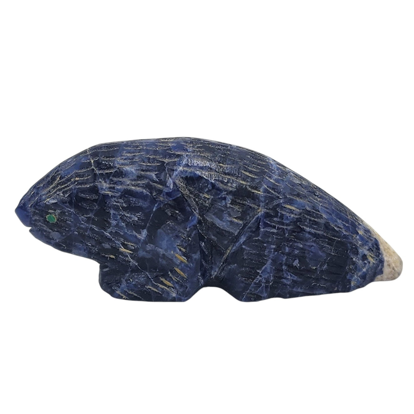 Native American Zuni Beaver Fetish Carving Lapis Lazuli Green Eyes Signed Totem Southwest Tribal Art