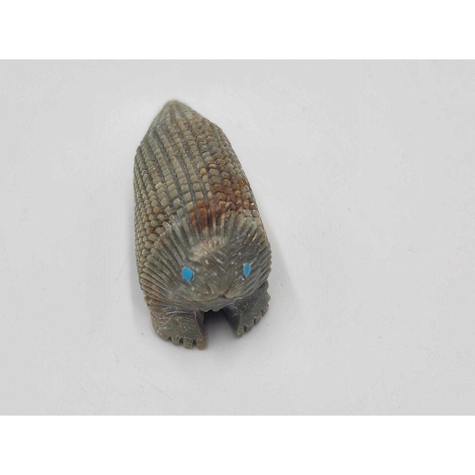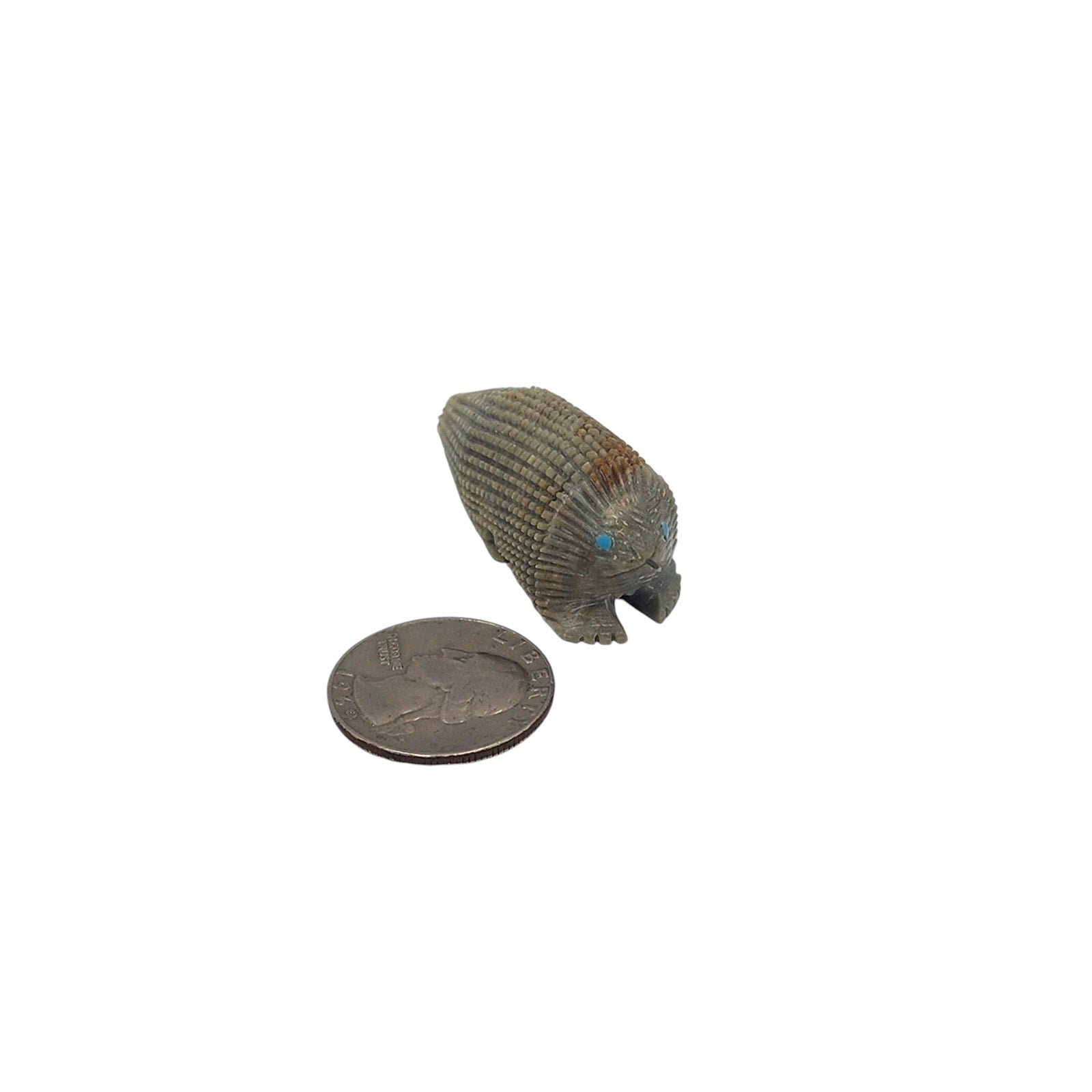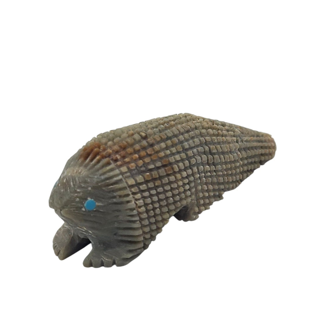 Native American Zuni Fetish Stone Carving Armadillo Inlaid Turquoise Eyes Handcrafted Southwest Art Miniature Boho Signed