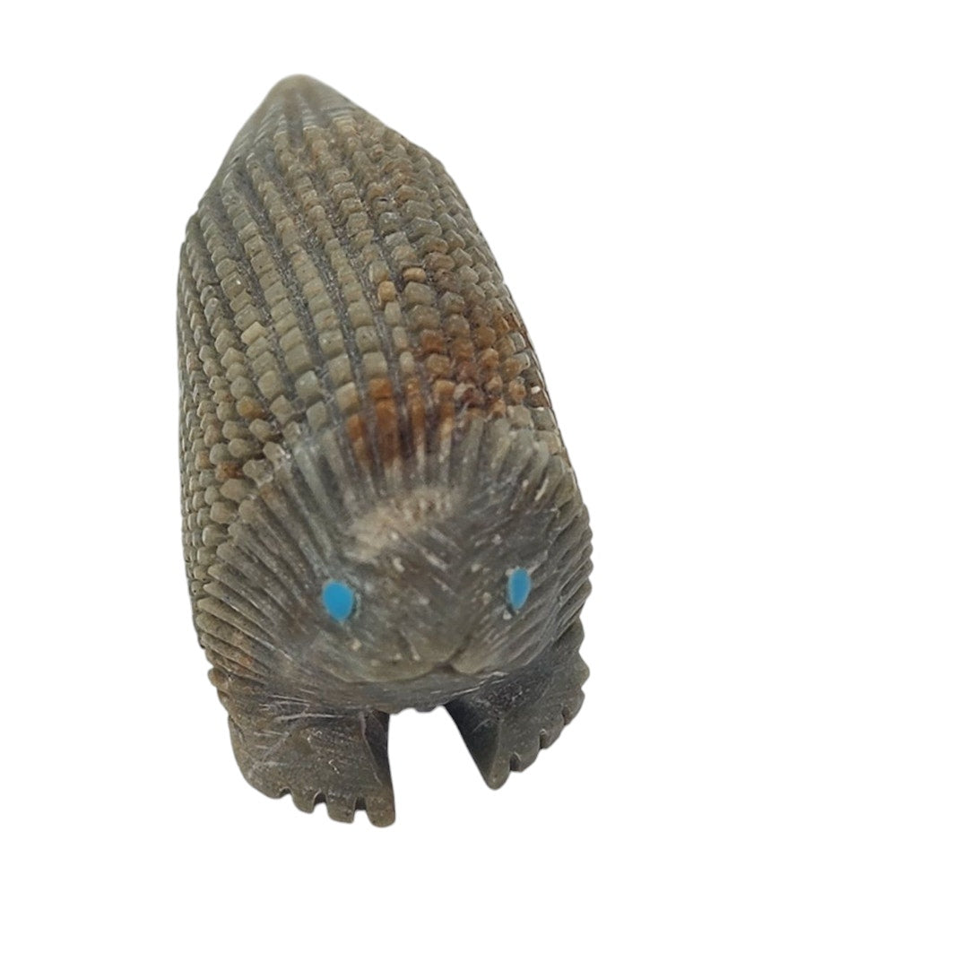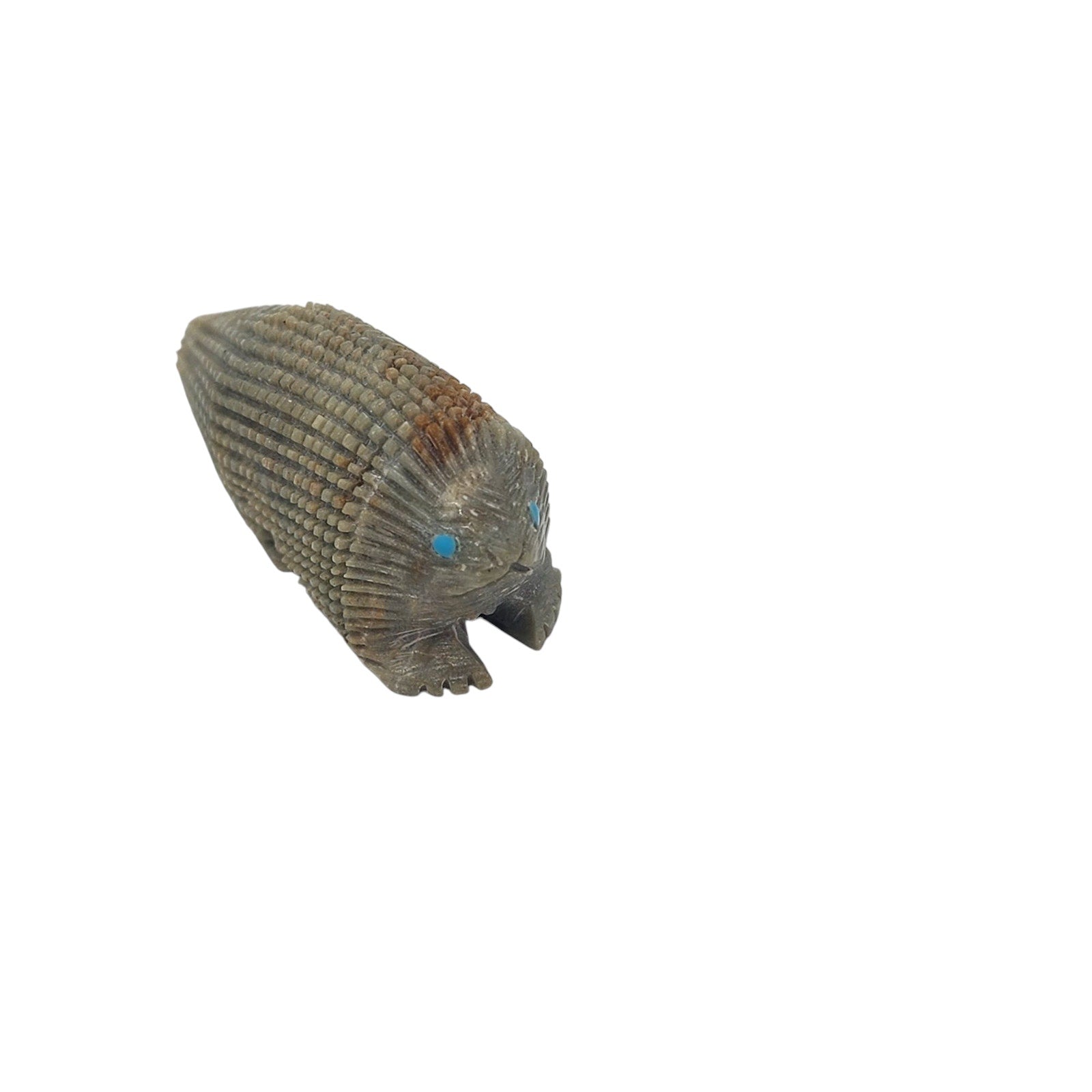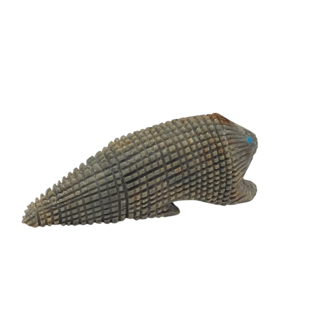 Native American Zuni Fetish Stone Carving Armadillo Inlaid Turquoise Eyes Handcrafted Southwest Art Miniature Boho Signed