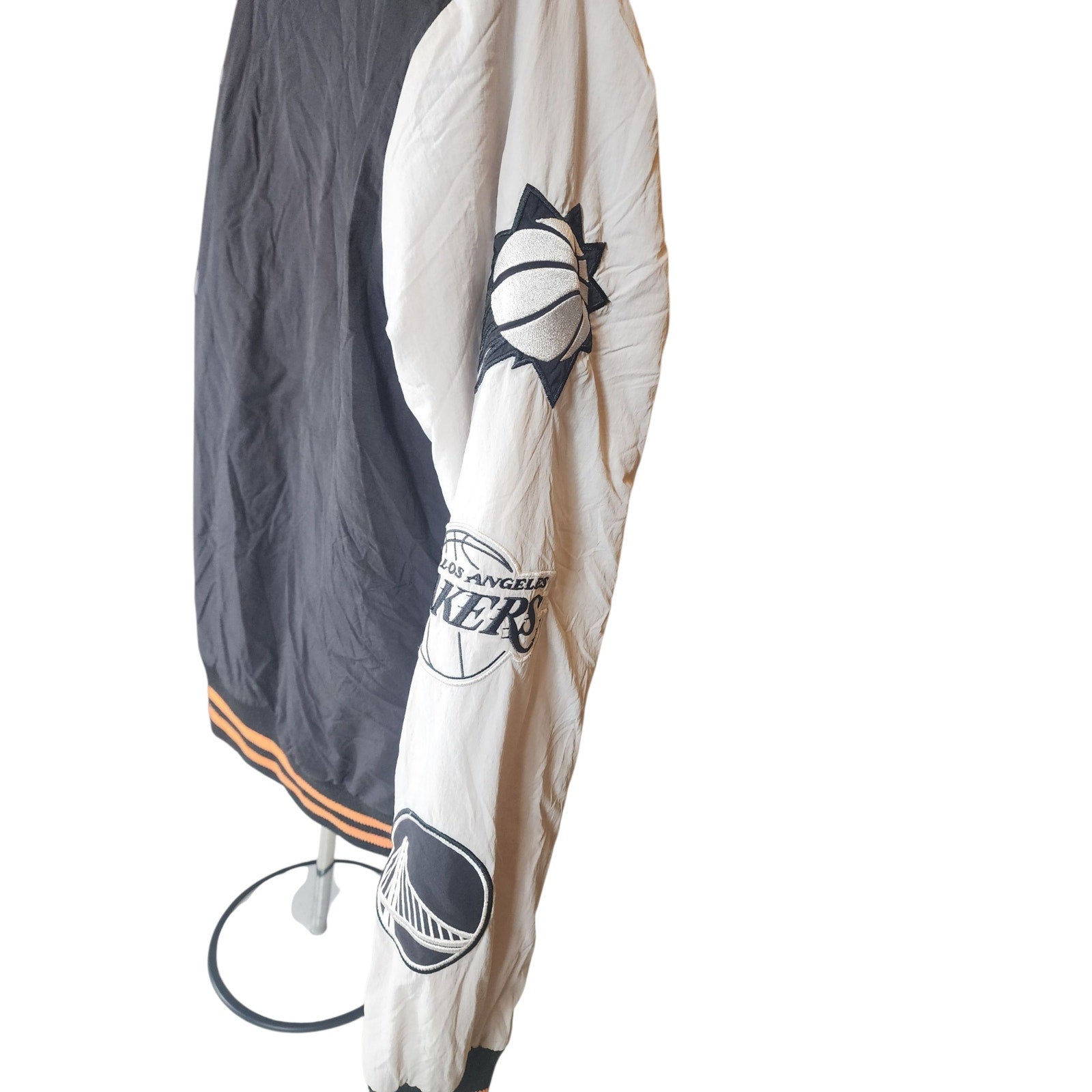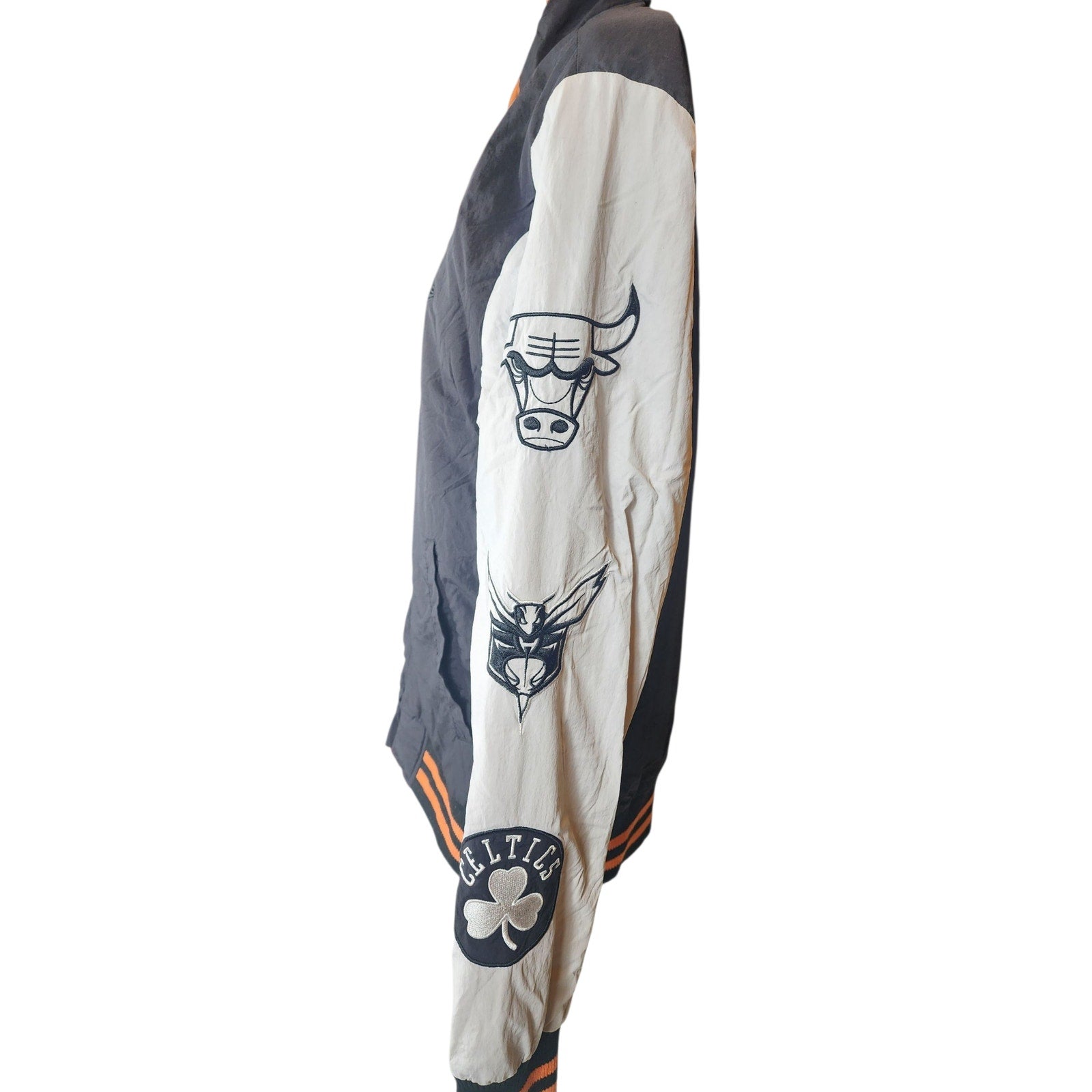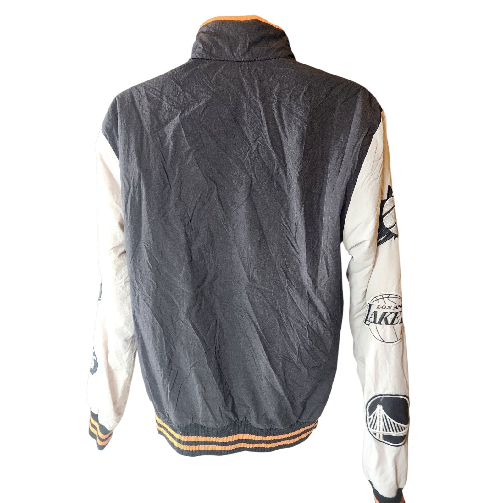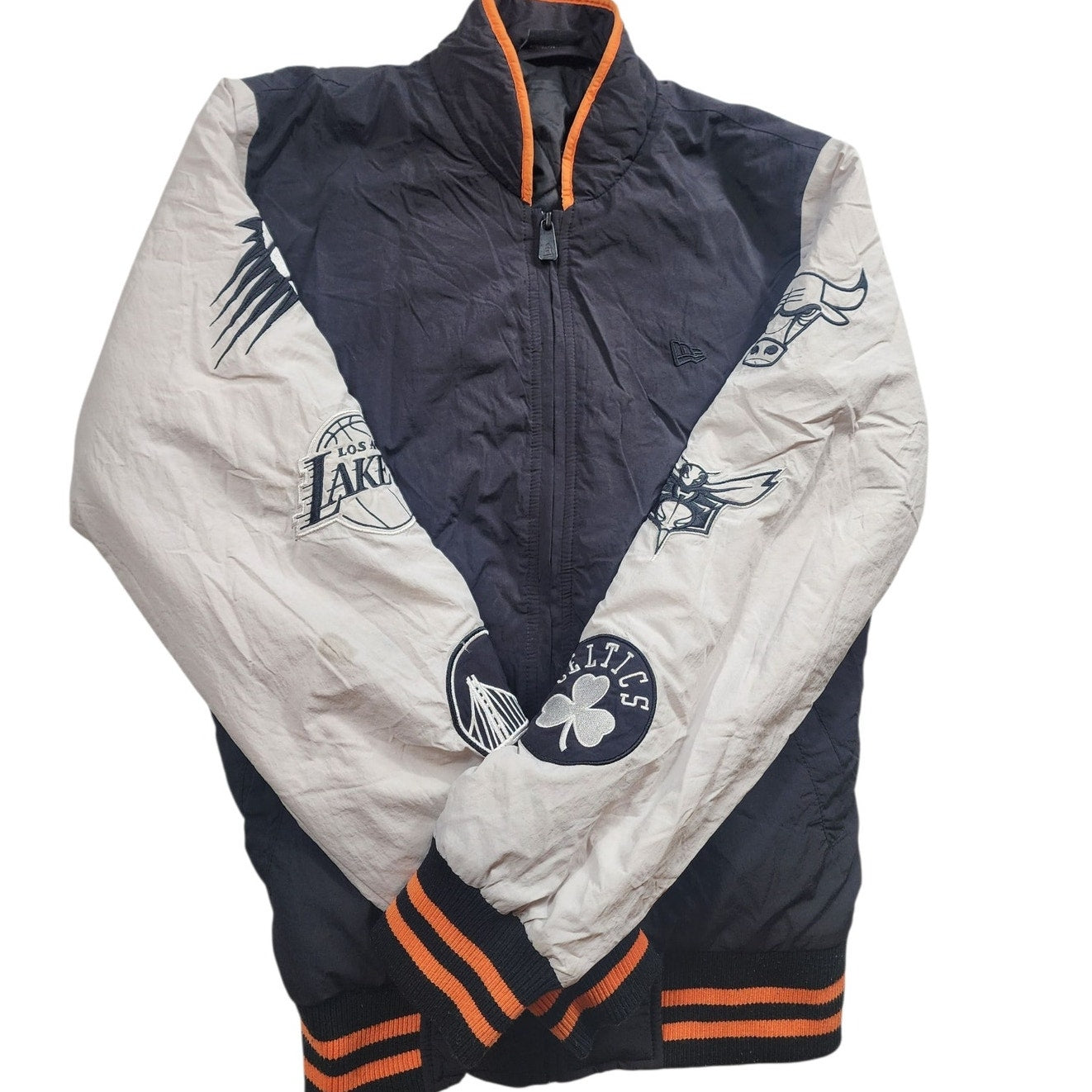 New Era NBA East West Coast Varsity Jacket Mens Small Black White Team Logo Bomber Windbreaker Lakers Bulls Celtics Hornets Streetwear Retro Style