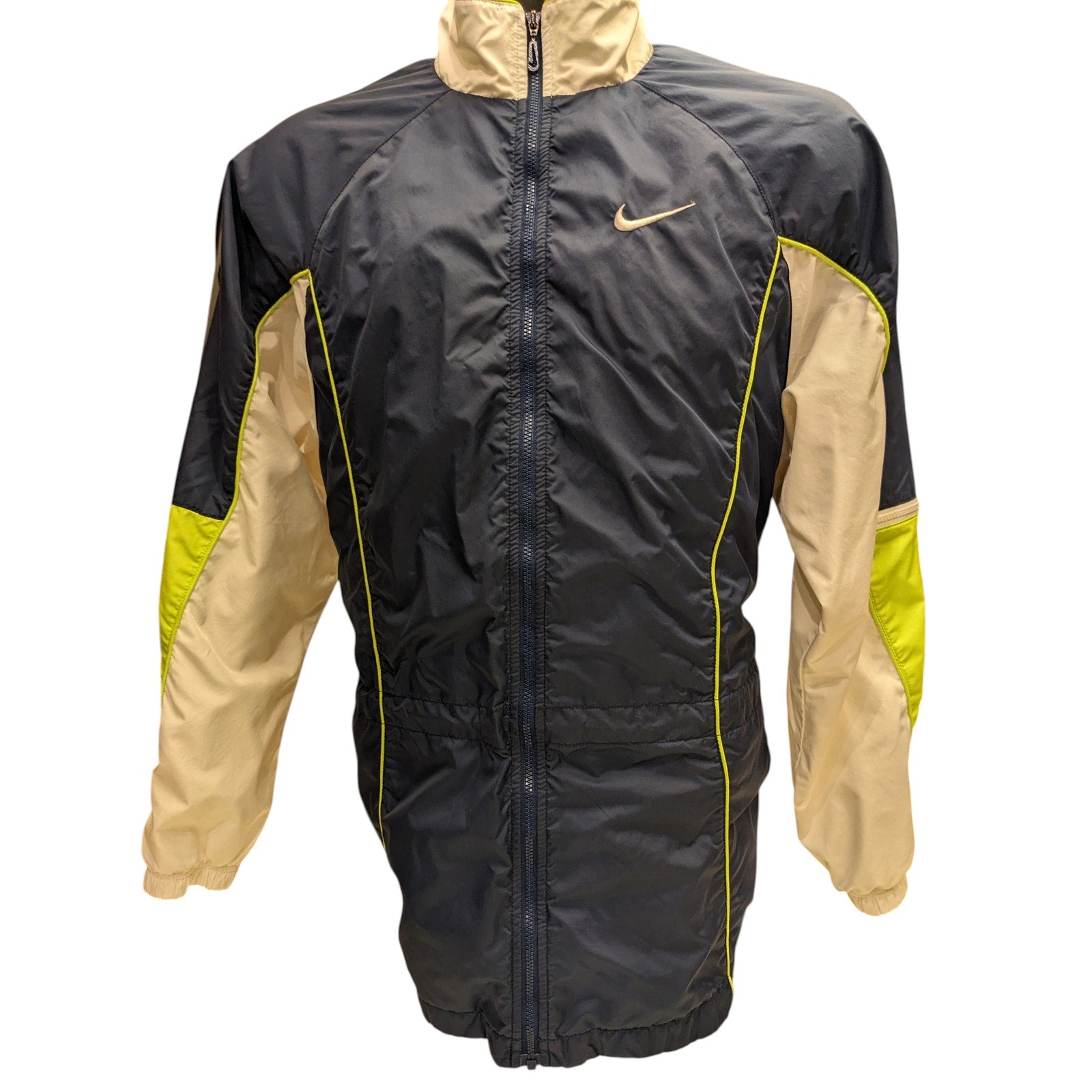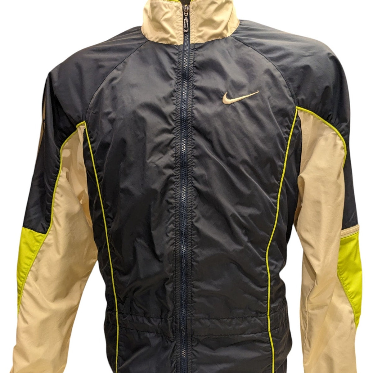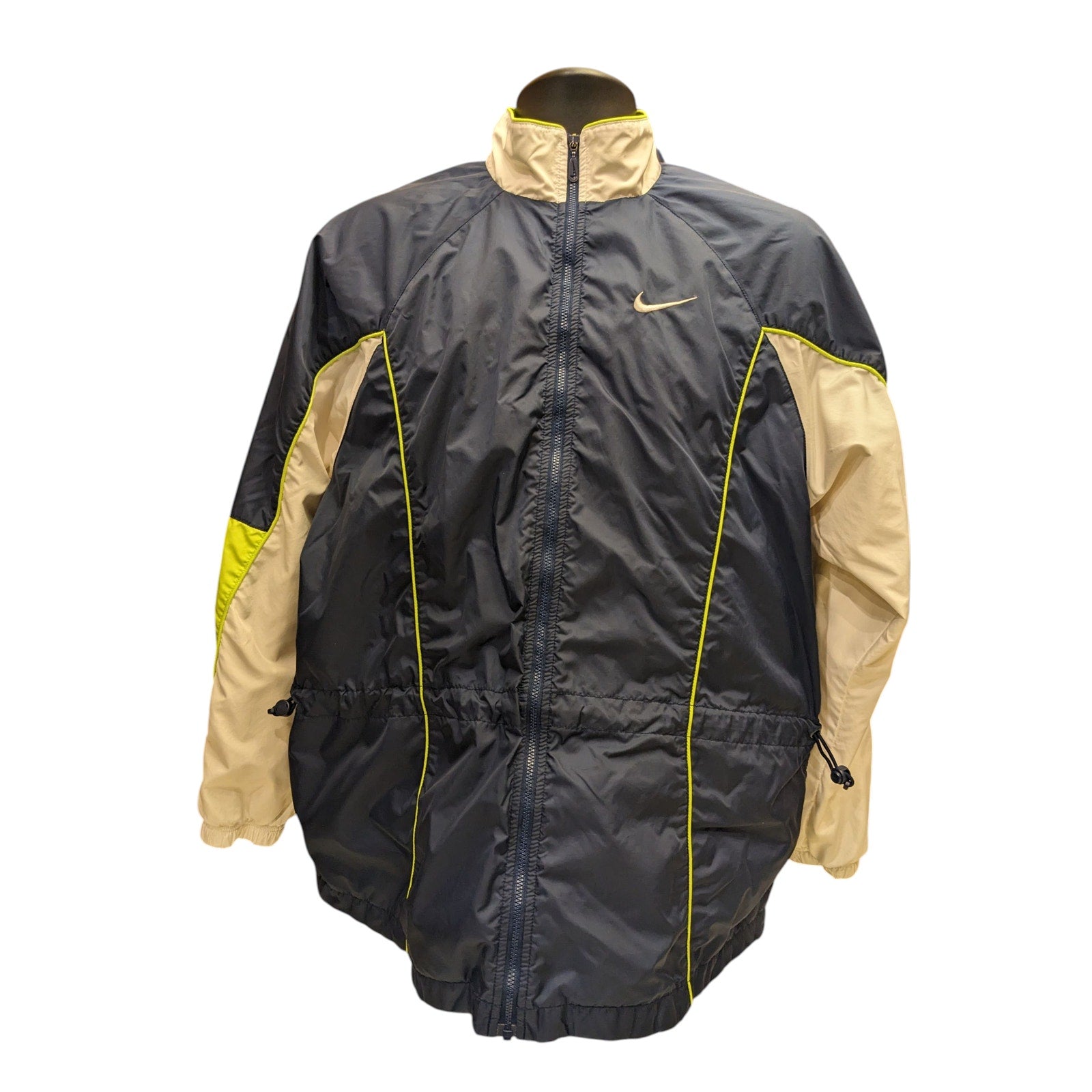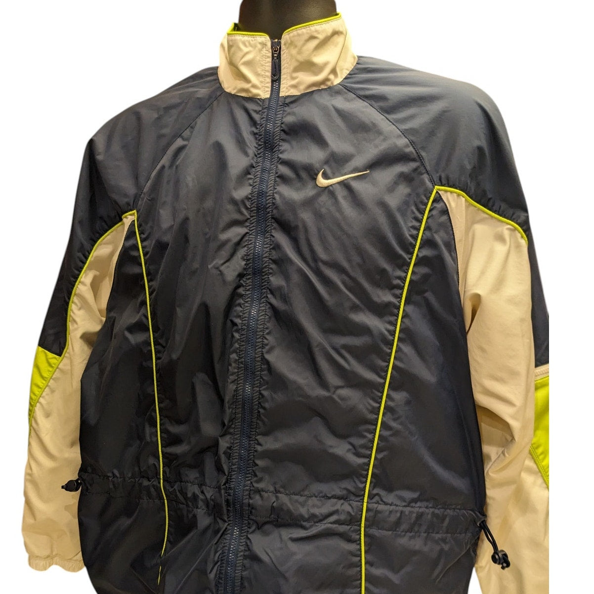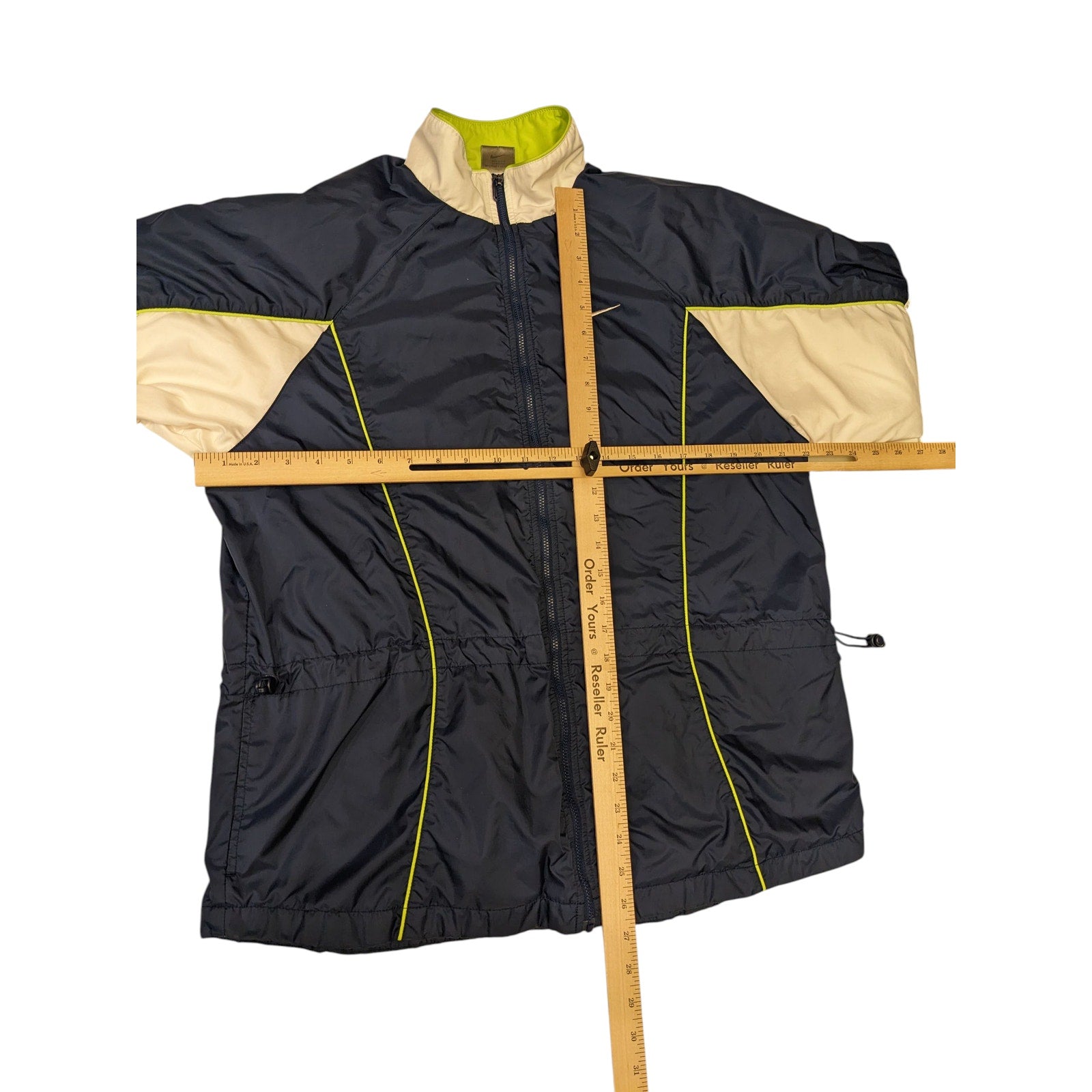 Nike Windbreaker Jacket Womens Medium 8-10 Retro Full Zip Track Jacket 90s Style Spellout Logo Swoosh Back Sportswear