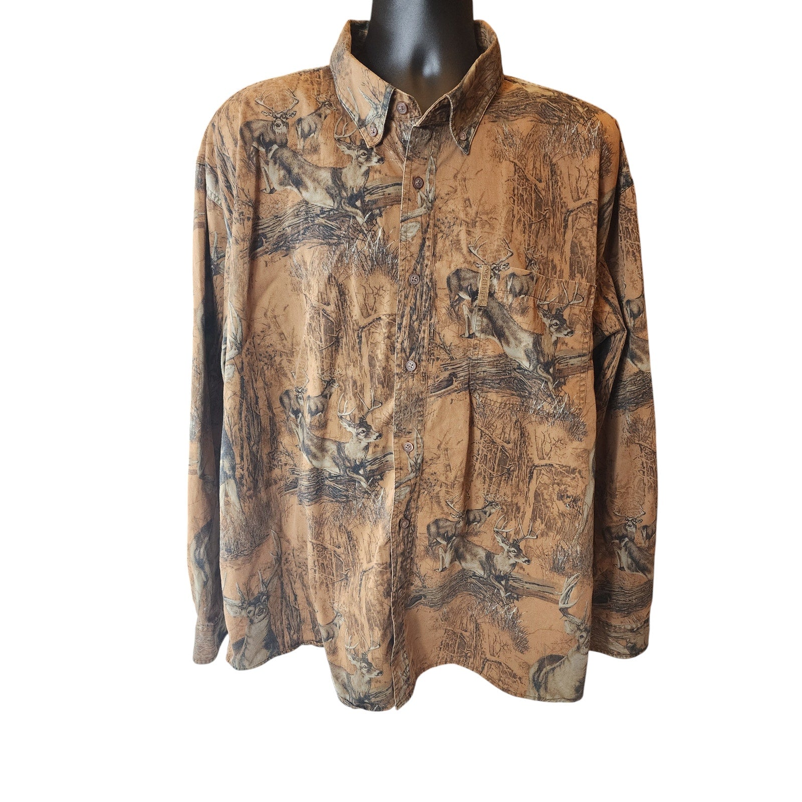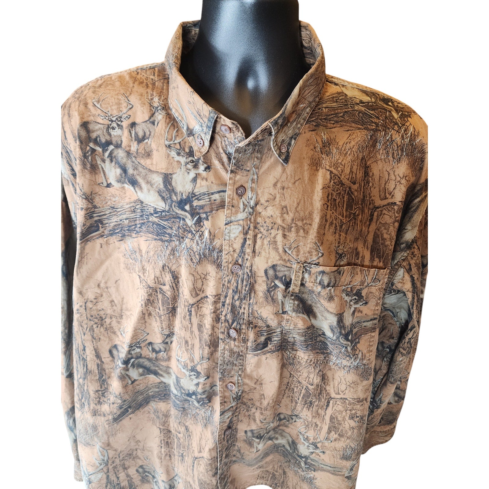 Noble River Hunting Shirt Mens Size XXL Deer Camo Print Button Down Outdoorsman Rugged Long Sleeve