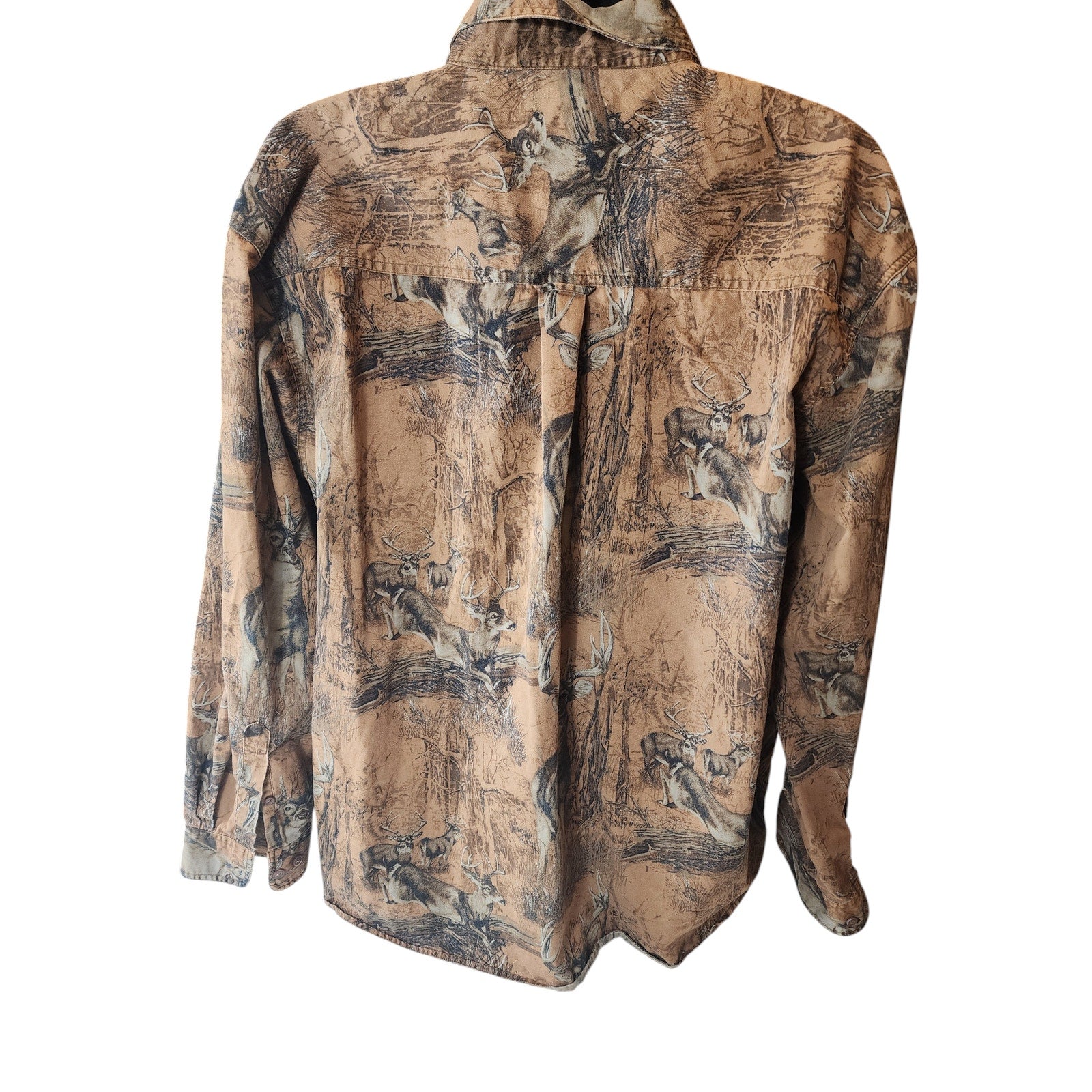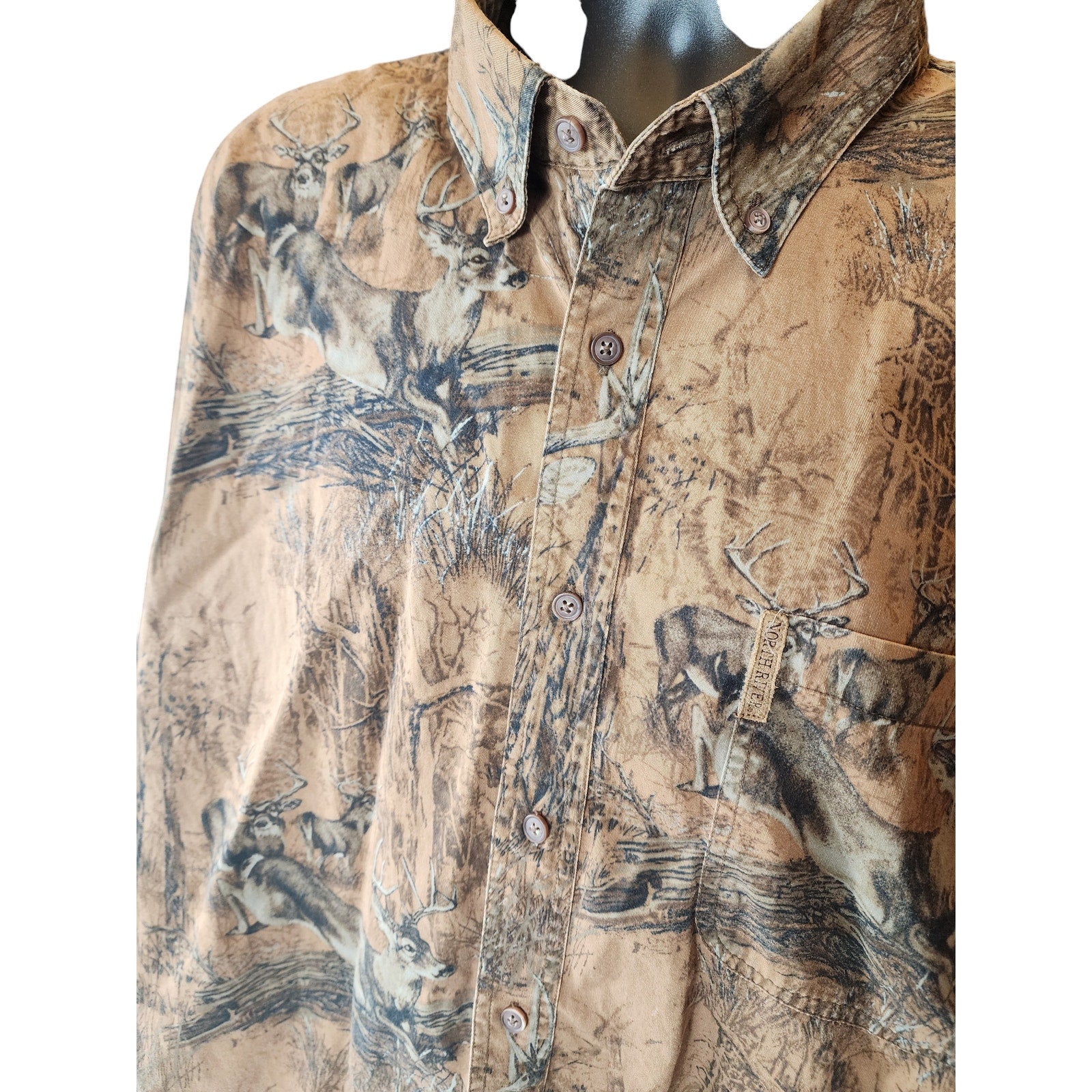 Noble River Hunting Shirt Men XXL Deer Camo Print Button Down Outdoorsman Rugged