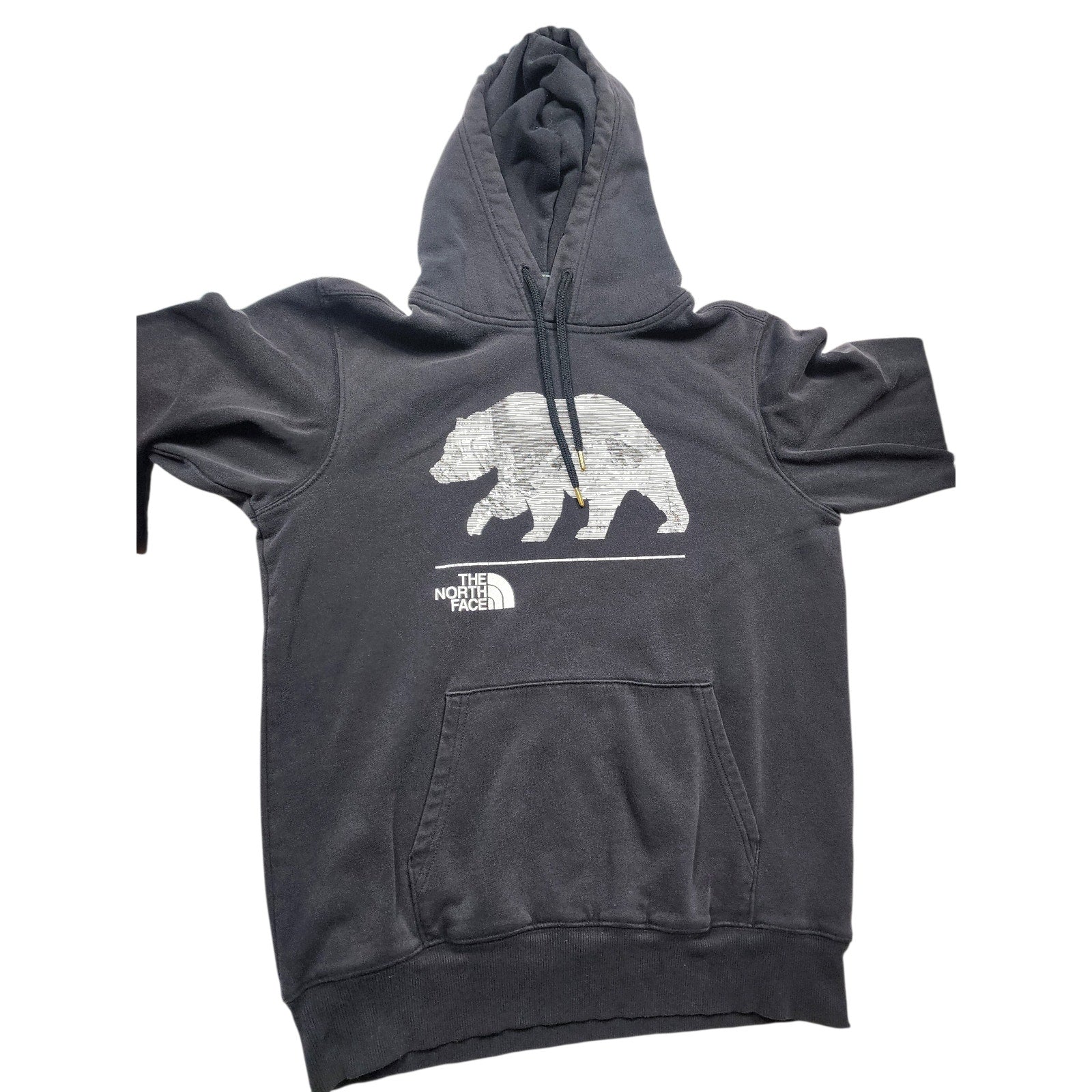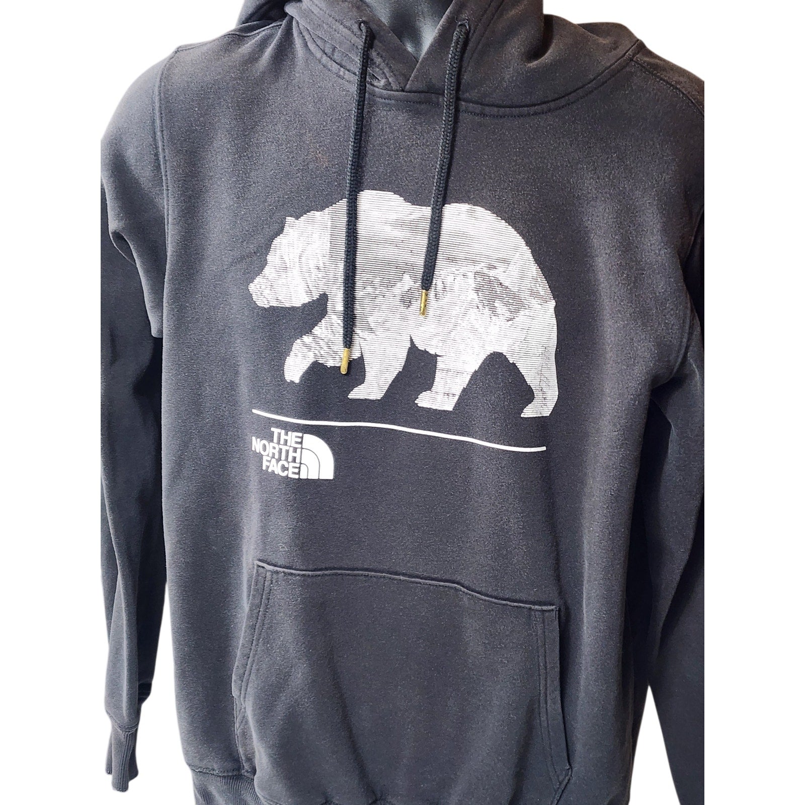 The North Face Hoodie Mens Small Womens Medium Bear Graphic Pullover Sweatshirt Black Outdoors Kangaroo Pocket Hiking Y2K