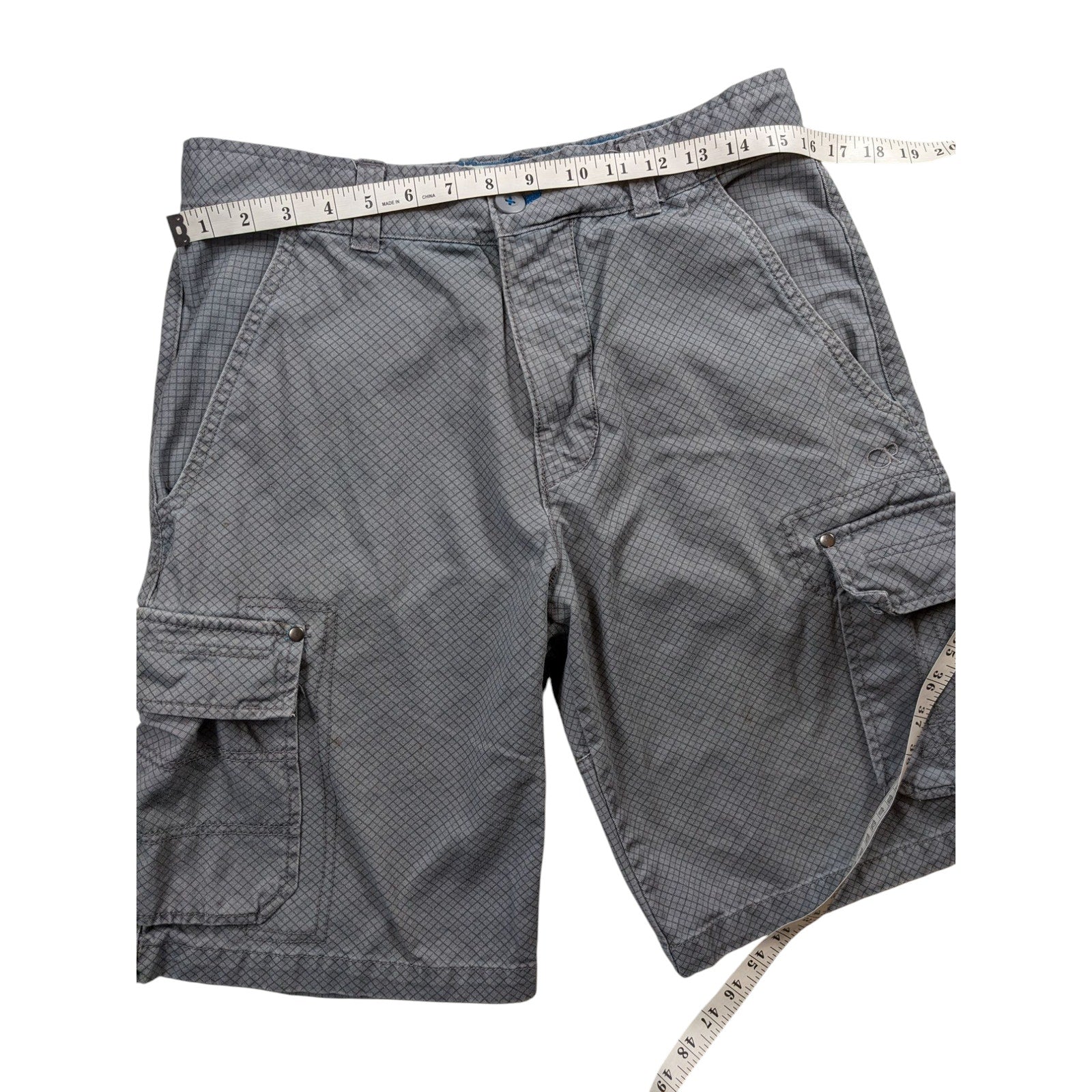 Ocean Pacific OP Mens 34 Gray Cargo Shorts Outdoor Utility Pockets Cotton Checkered Grid Pattern