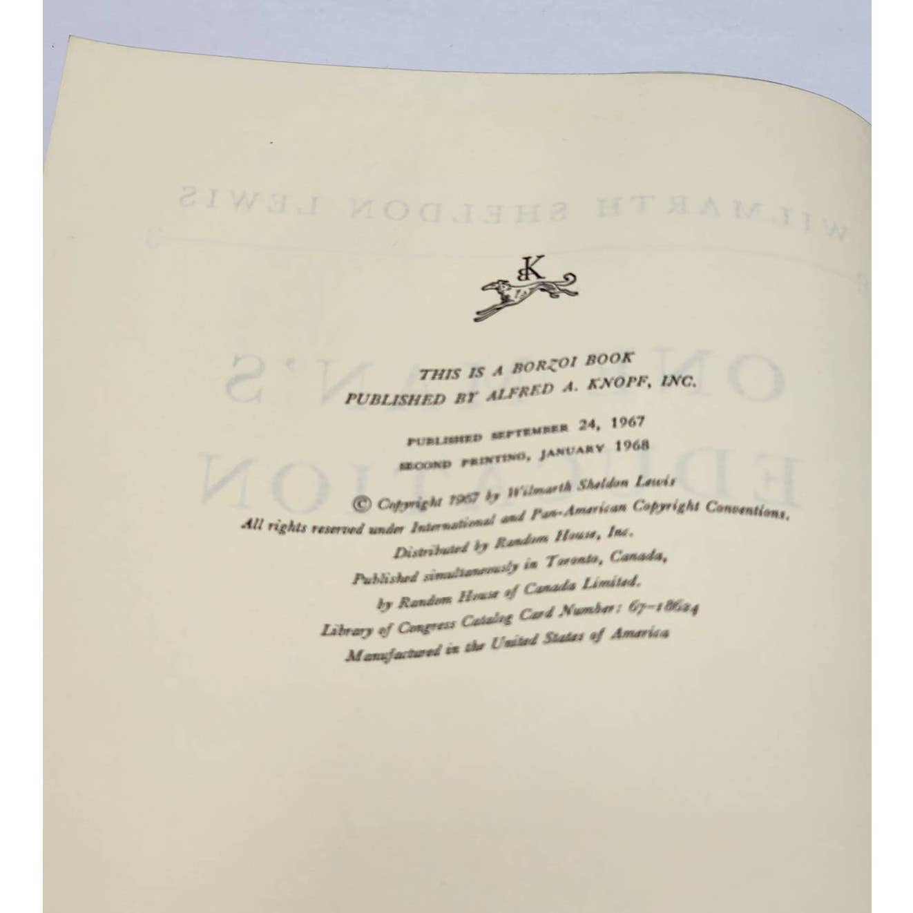 One Man's Education is an autobiographical essay by Wilmarth Sheldon Lewis, published in 1967. The book is a reflection on Lewis's life and education, from his childhood in New Haven, Connecticut, to his career as a scholar and editor.