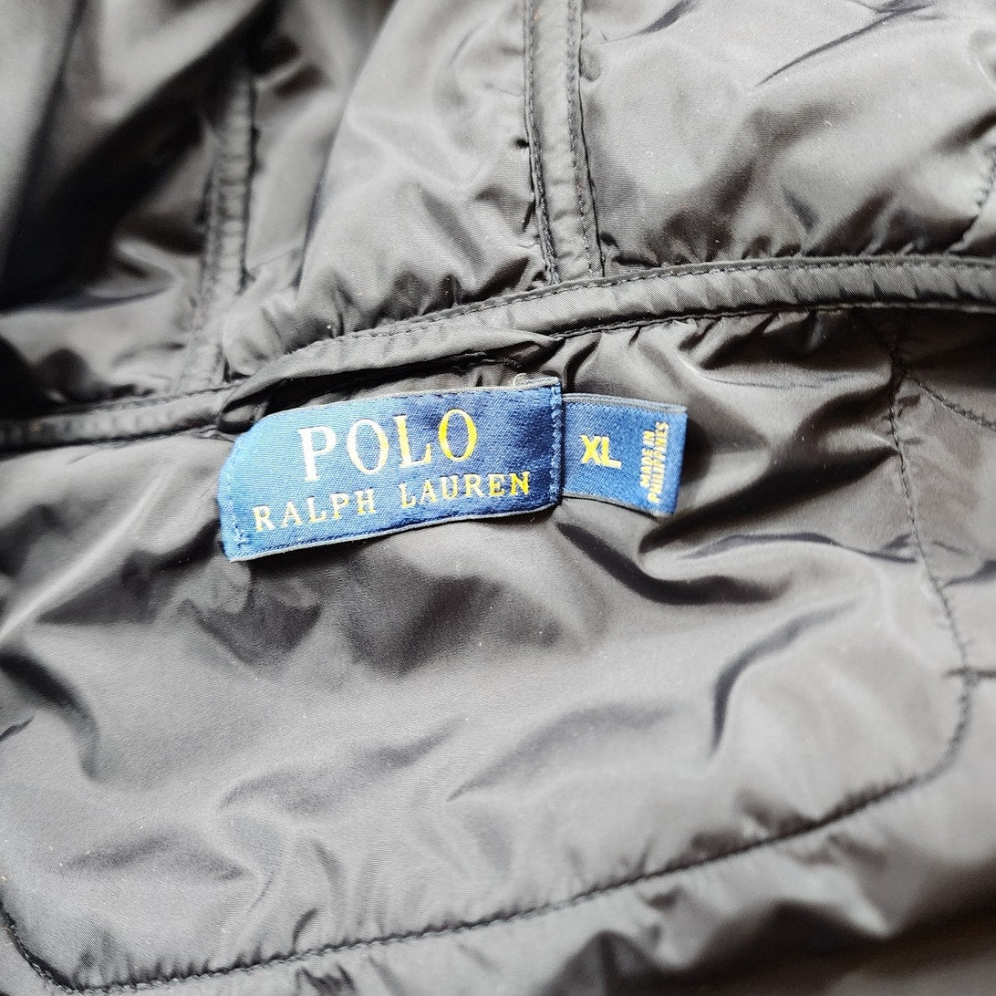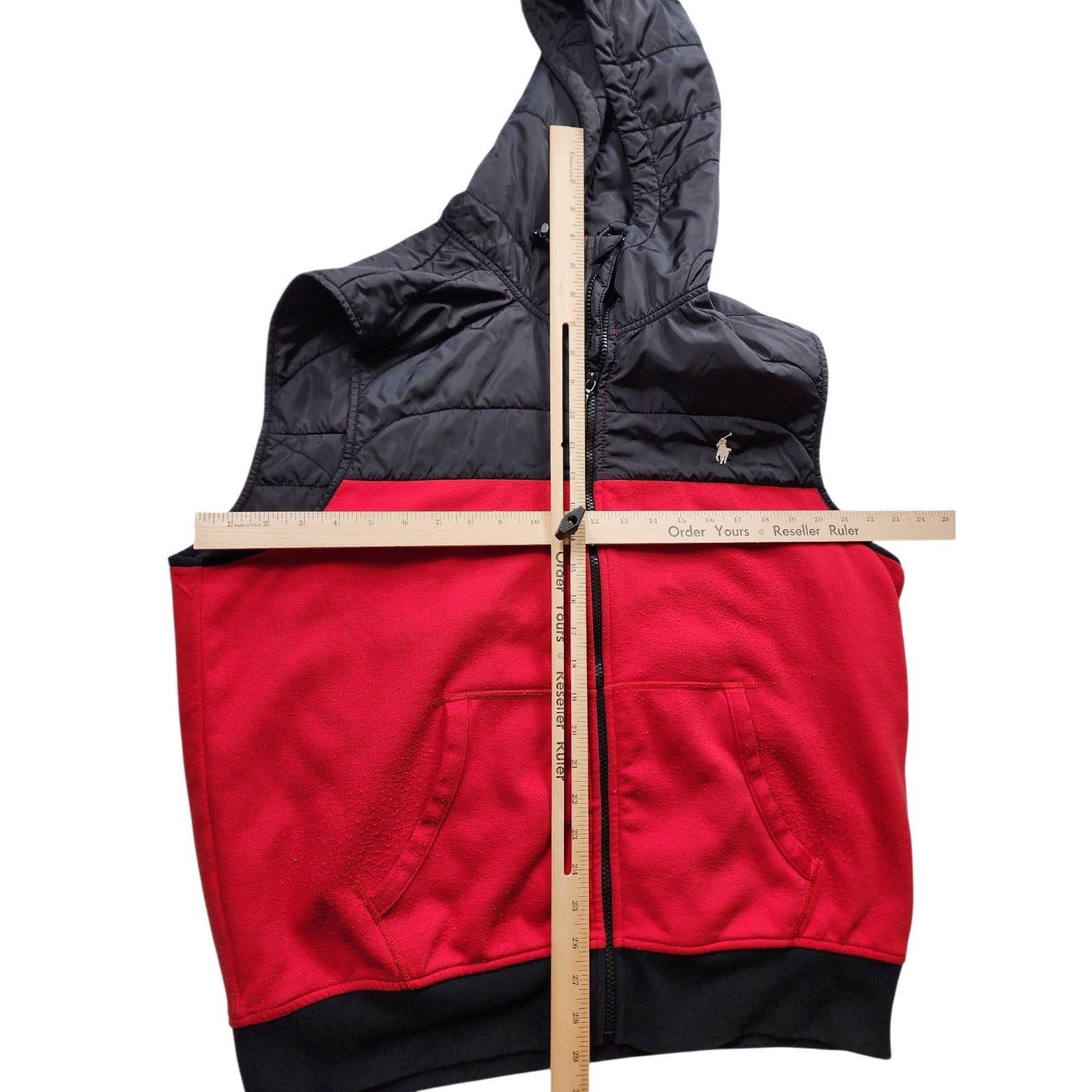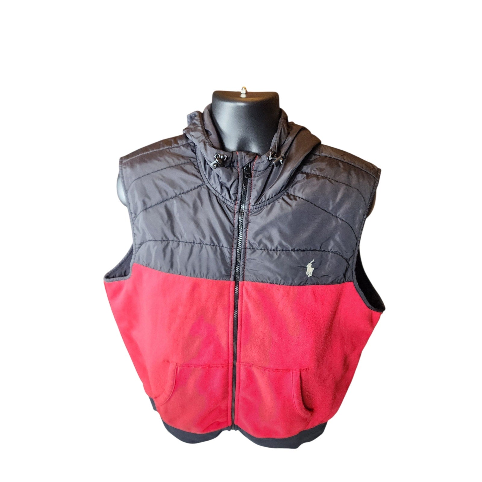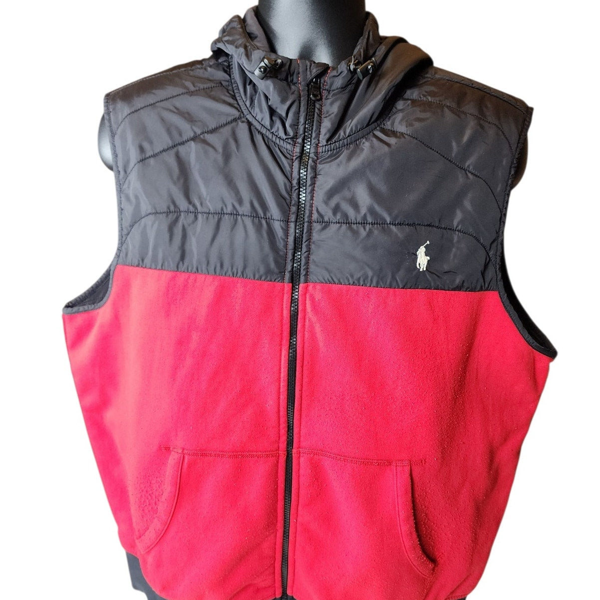 Polo Ralph Lauren Vest Mens XL Puffer Red Black Hooded Full Zip Front Pony Sleeveless Nylon Fleece Lined Zip Front Streetwear Casual Outerwear Gorpcore Sporty Gilet
