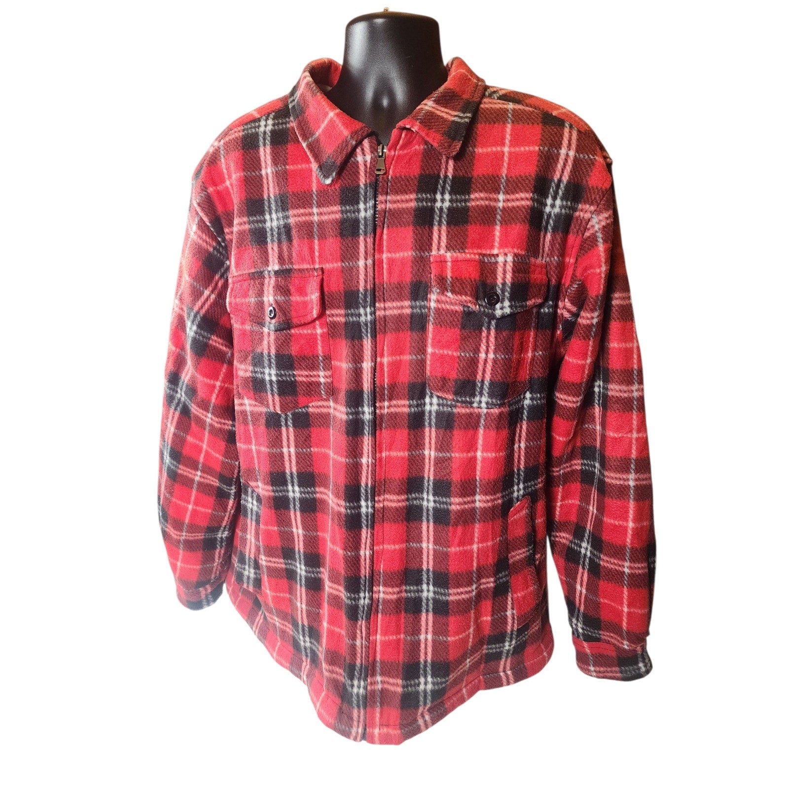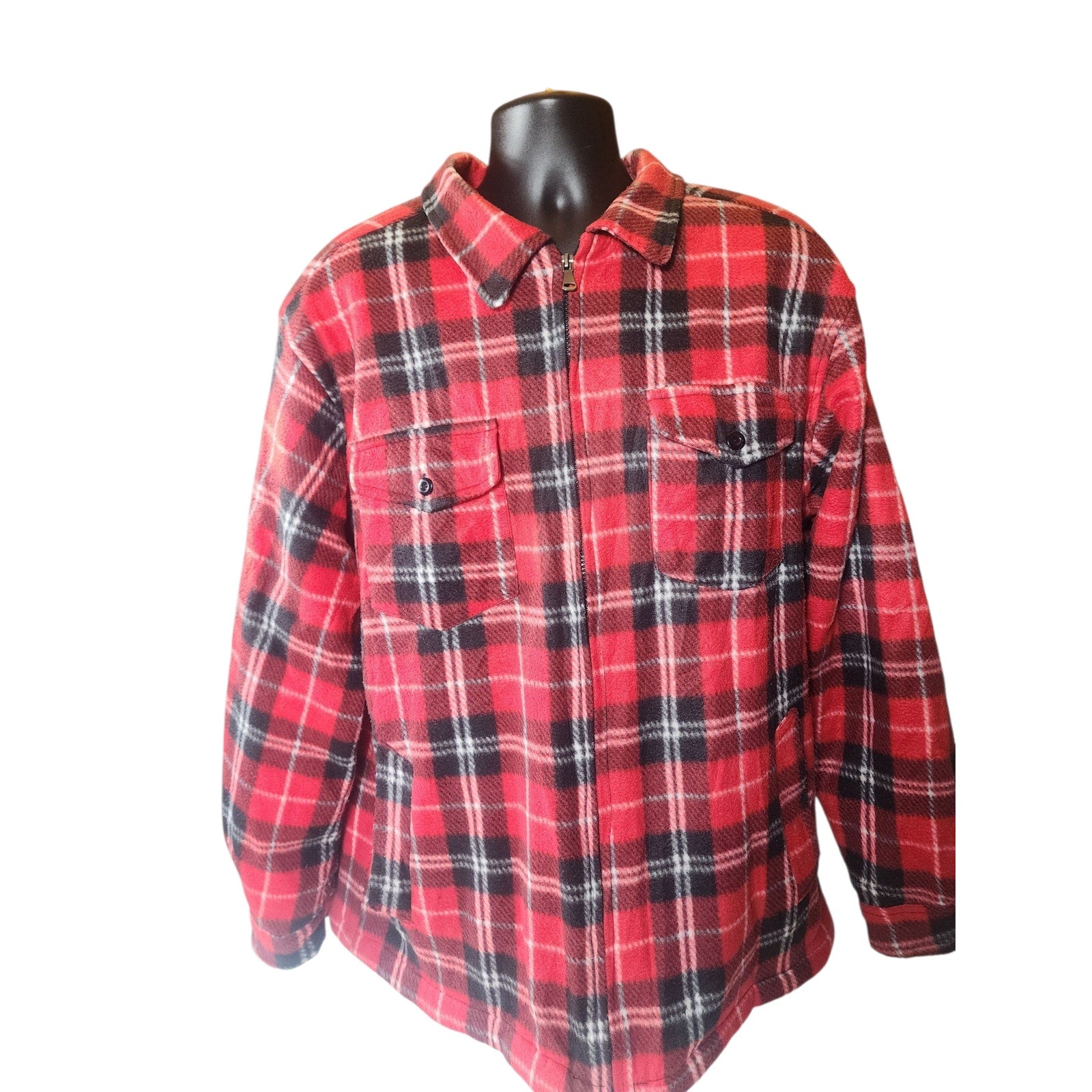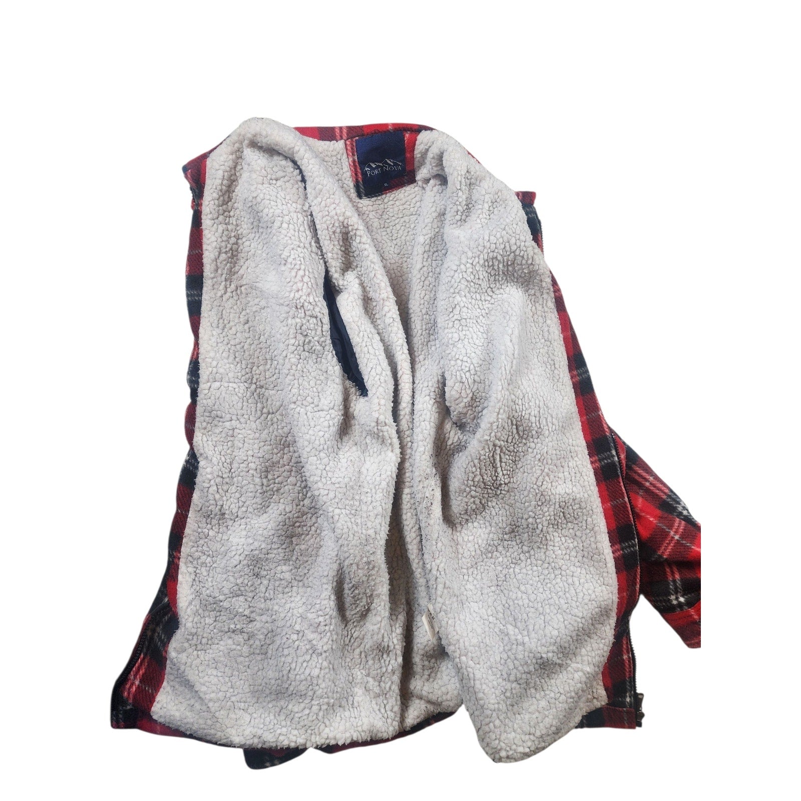 Port Nova Red Plaid Sherpa Lined Zip Shirt Jacket Mens XL Outdoor Workwear Flannel Red Black Buffalo Winter Fall Layering Hiking Lumberjack