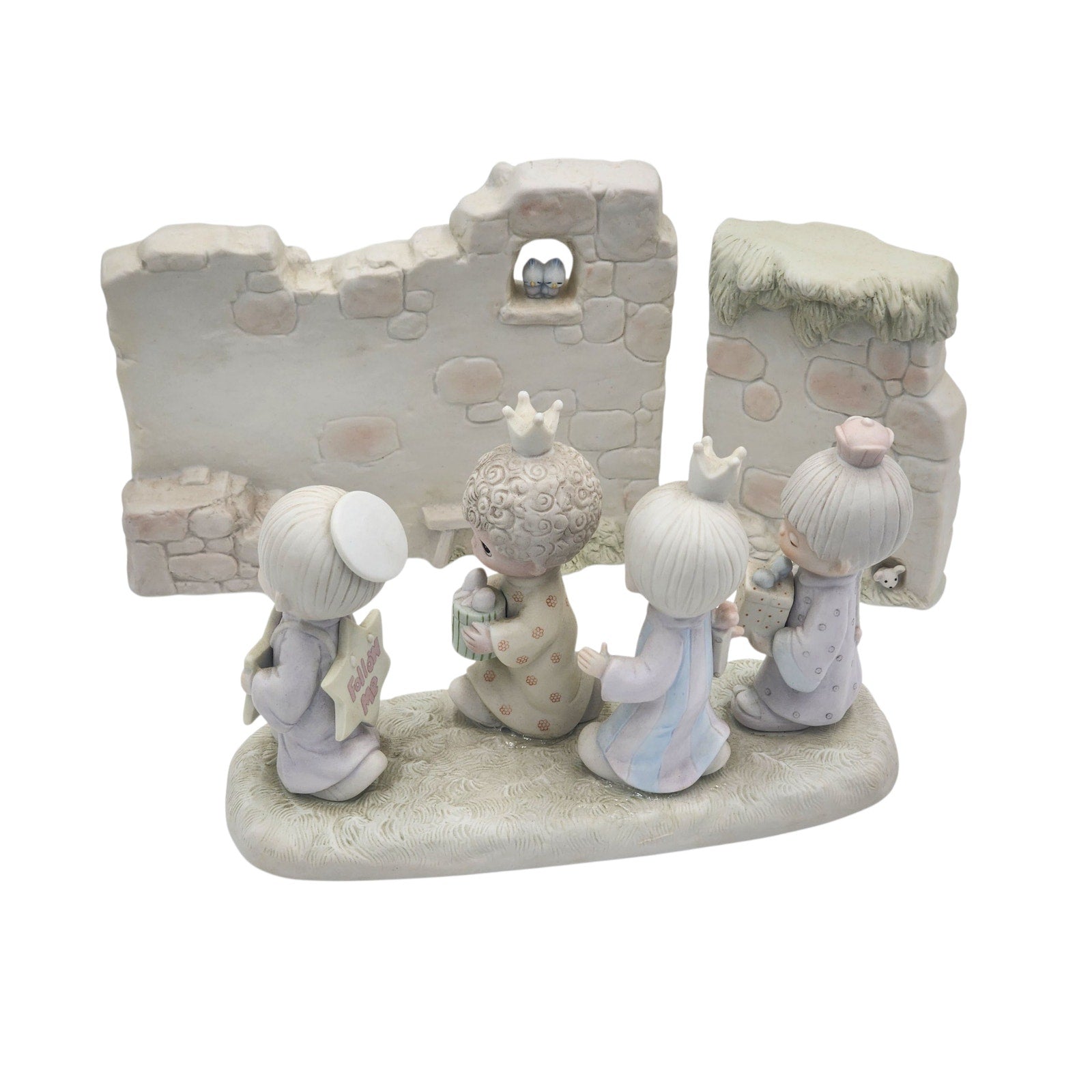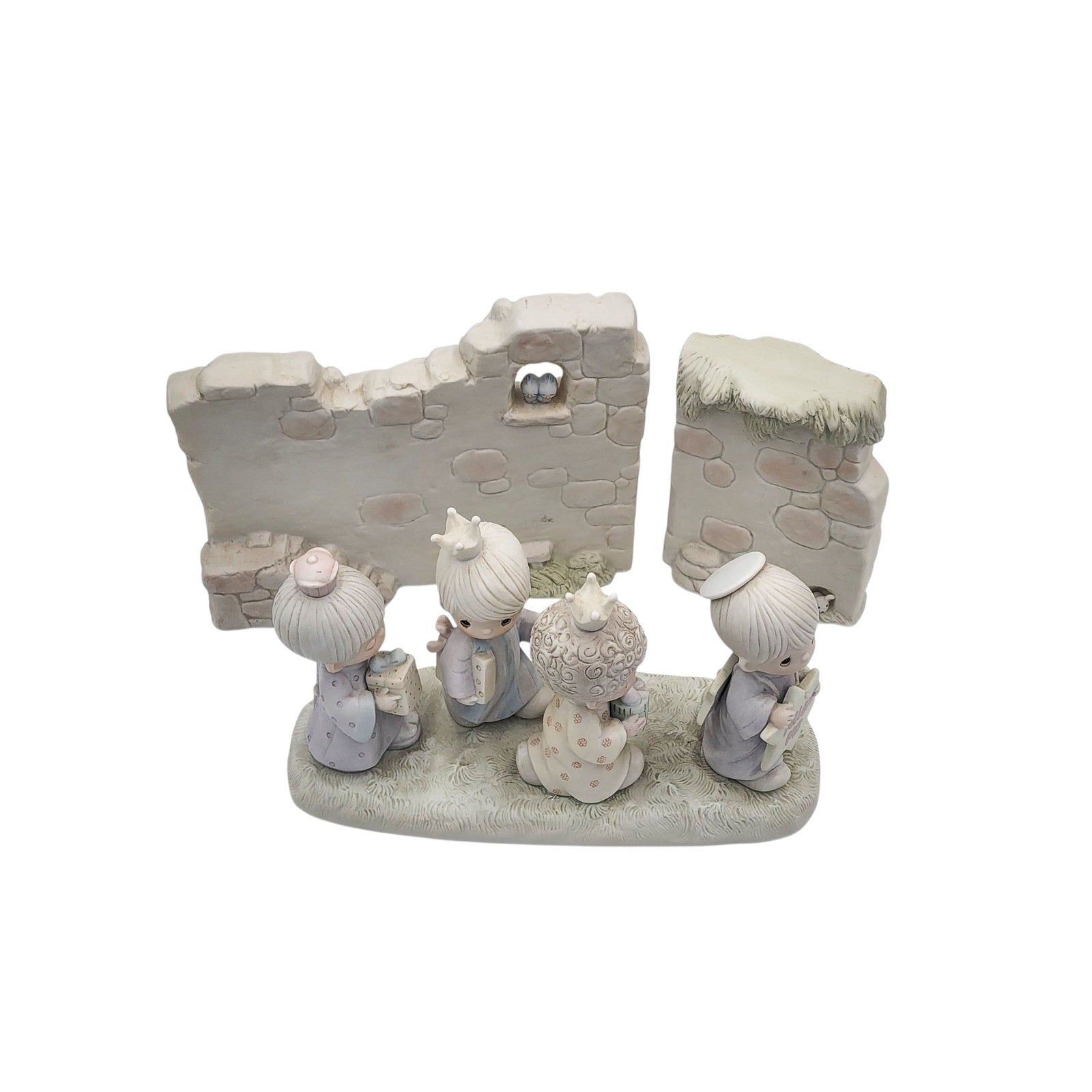 Enesco Precious Moments “They Followed The Star” & “Manger Wall Set” Vintage 1980 Nativity Scene E-5641 E-5644 Three Kings Angel Stable Walls Christmas