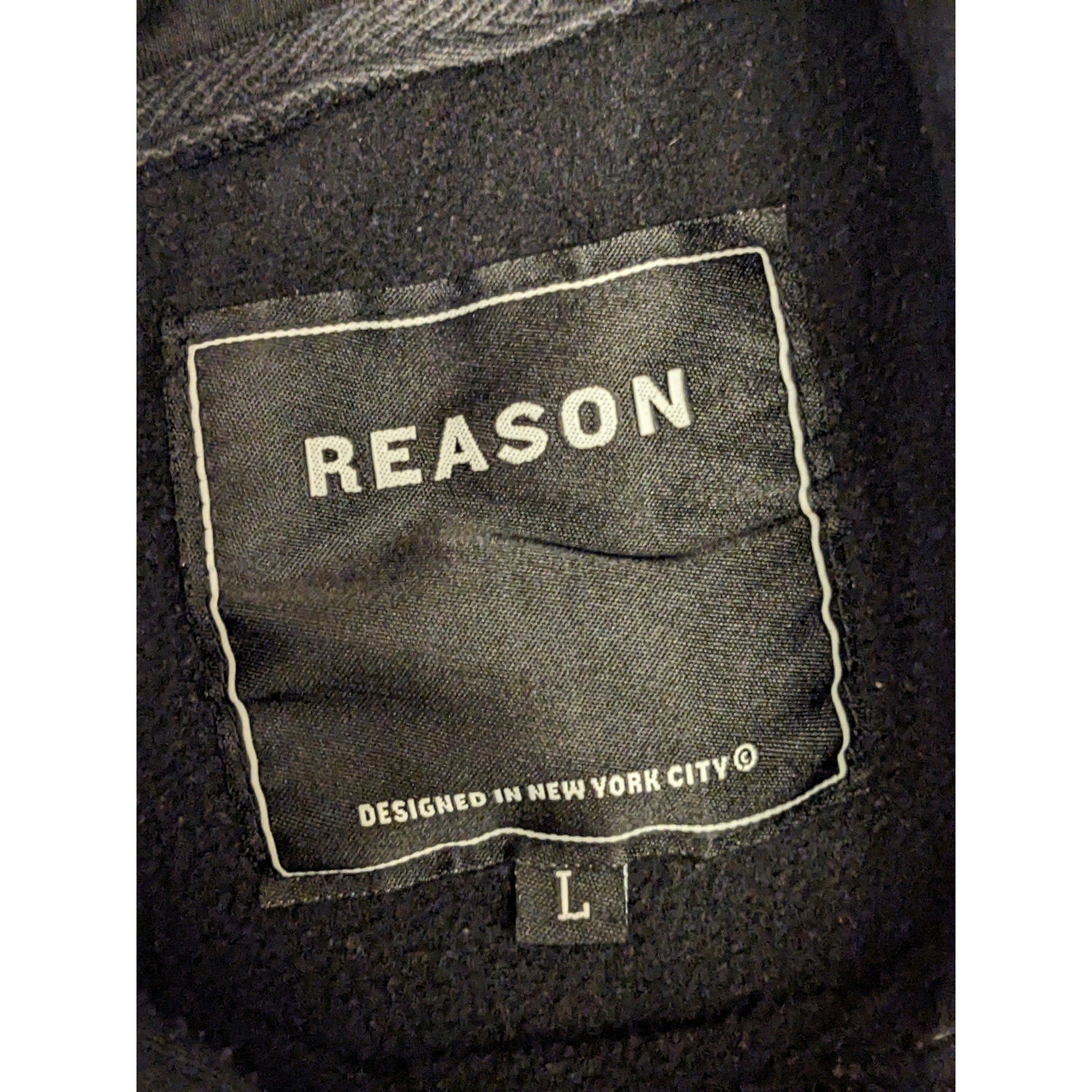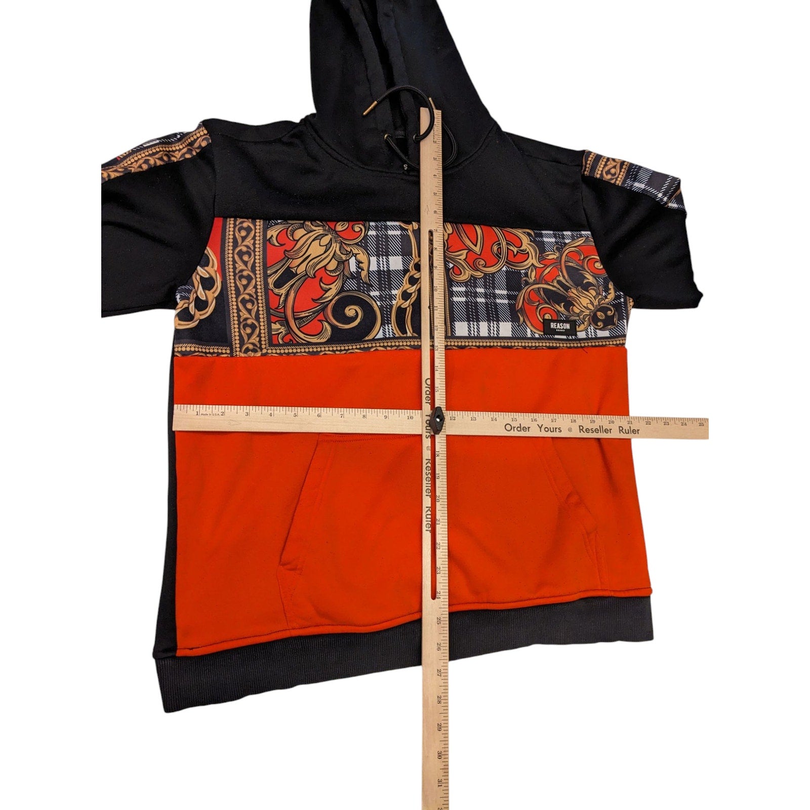 Reason Brand Hoodie Mens Large New York Black Red Baroque Print Pullover Sweatshirt Streetwear Kangaroo Pocket Bold Hip Hop Style