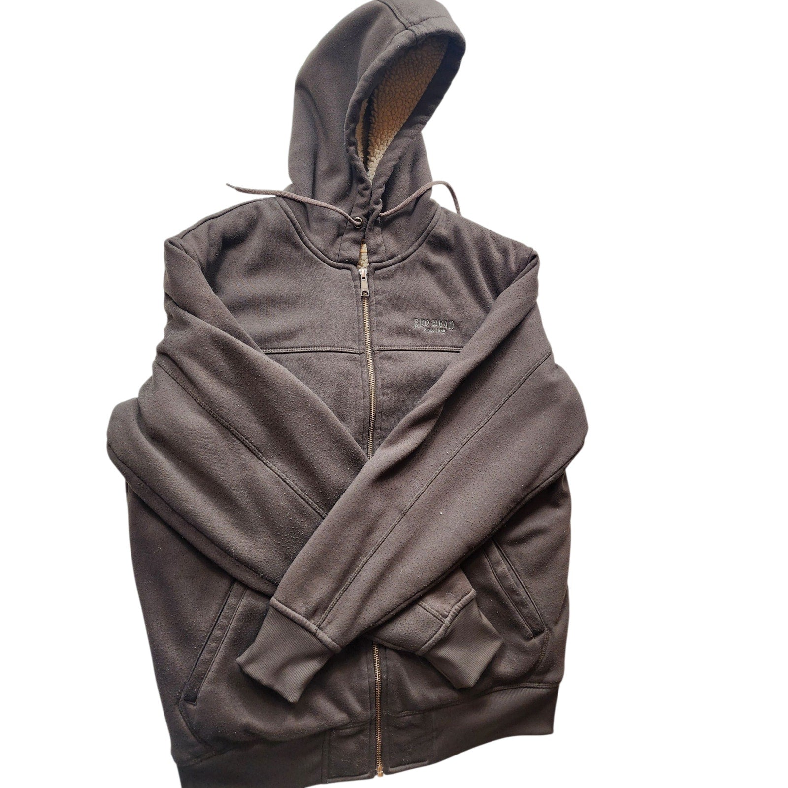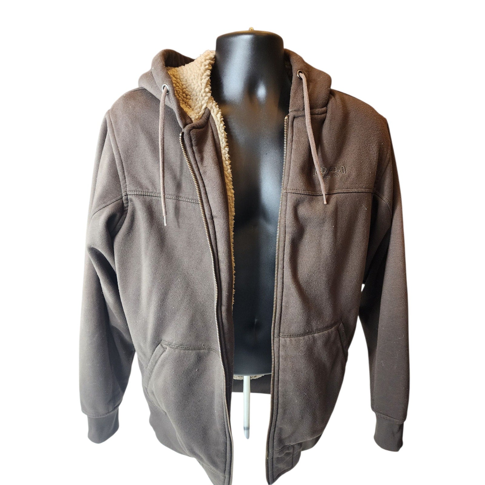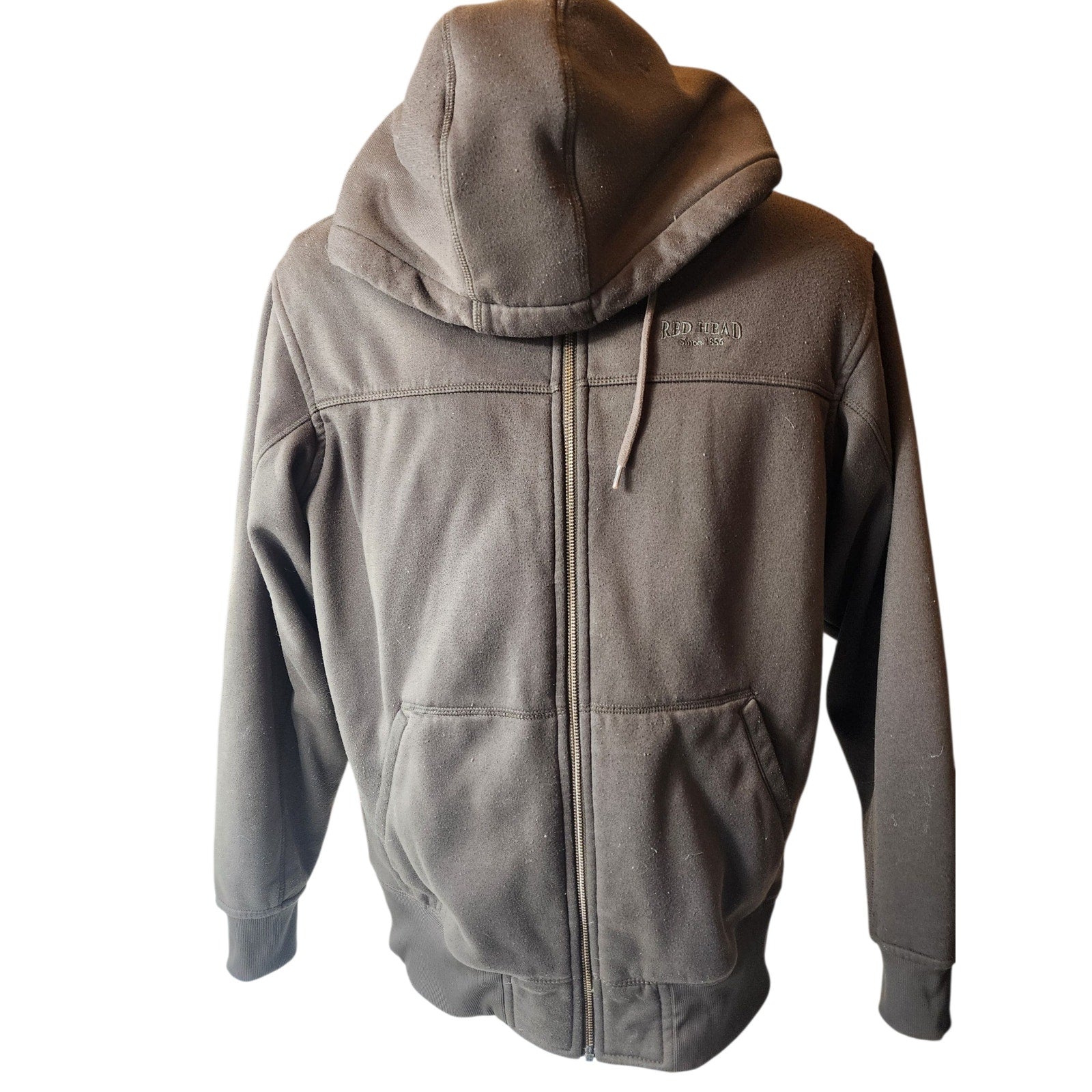 Red Head Sherpa Lined Full Zip Hoodie Mens Medium Brown Fleece Jacket Warm Casual Outdoor Hunting Workwear Kangaroo Pockets