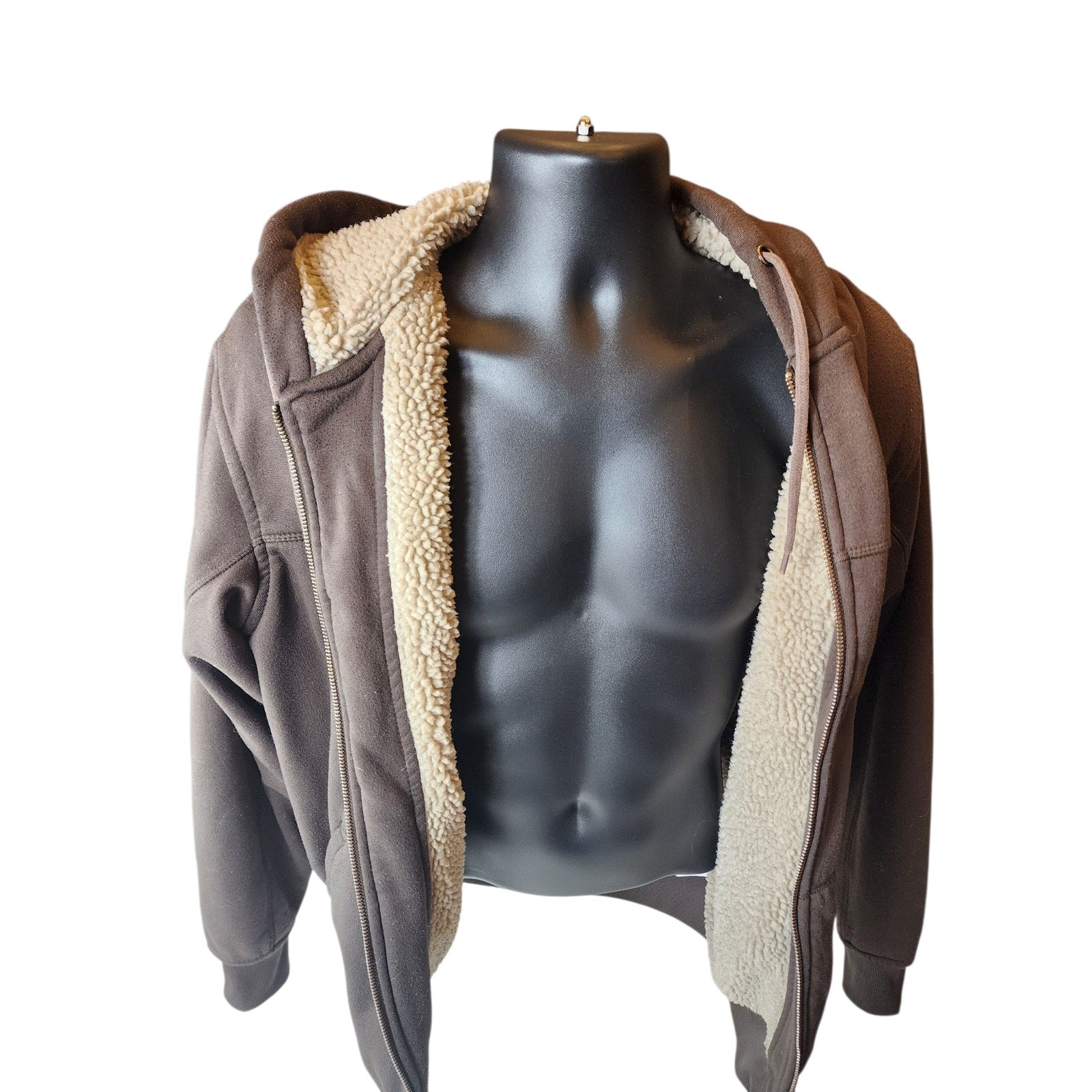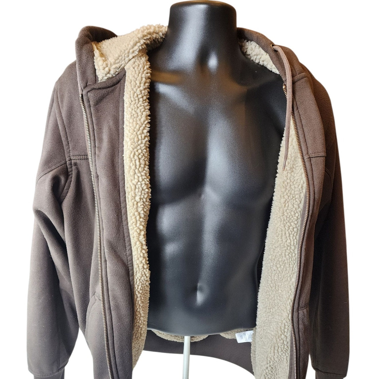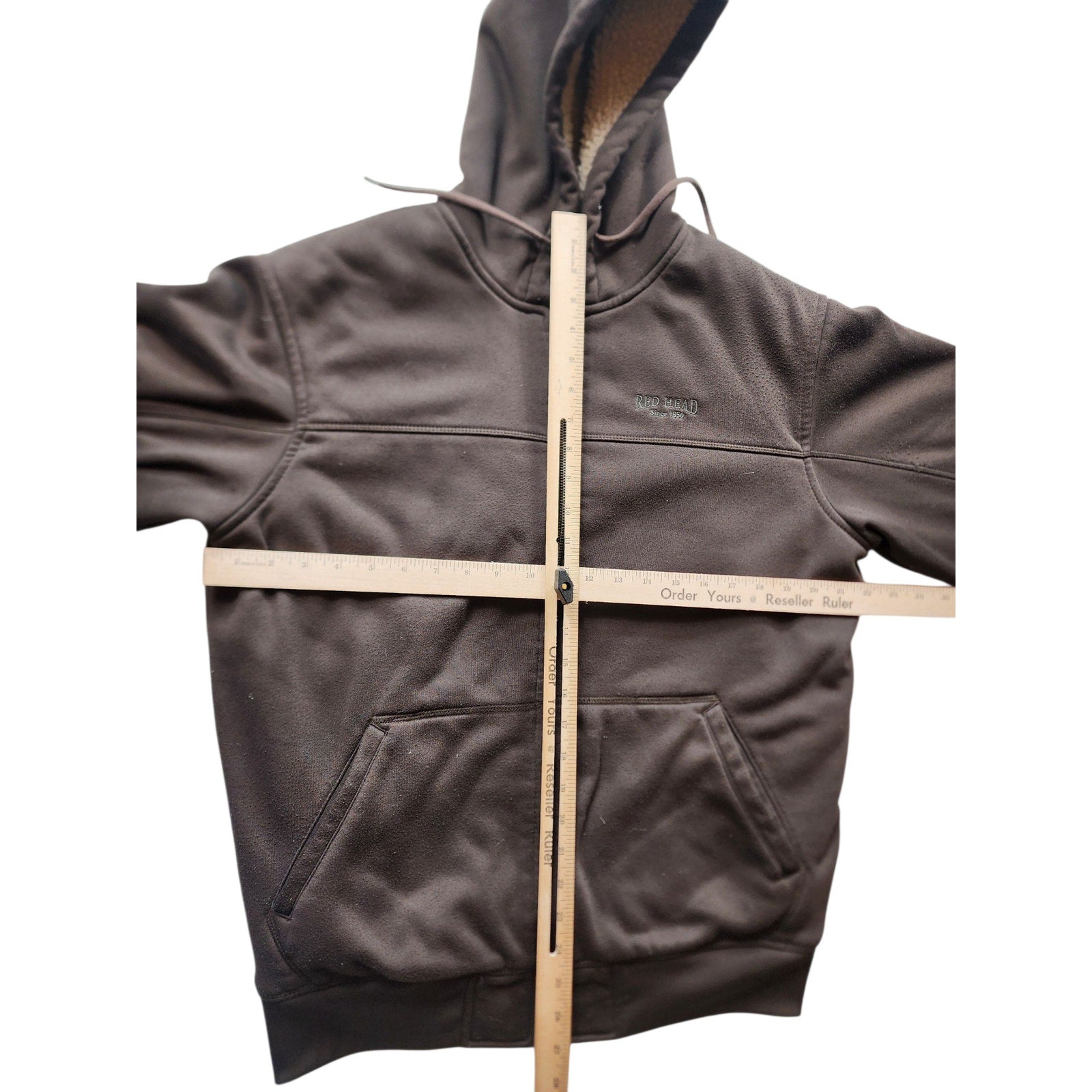 Red Head Sherpa Lined Full Zip Hoodie Mens Medium Brown Fleece Jacket Warm Casual Outdoor Hunting Workwear Kangaroo Pockets