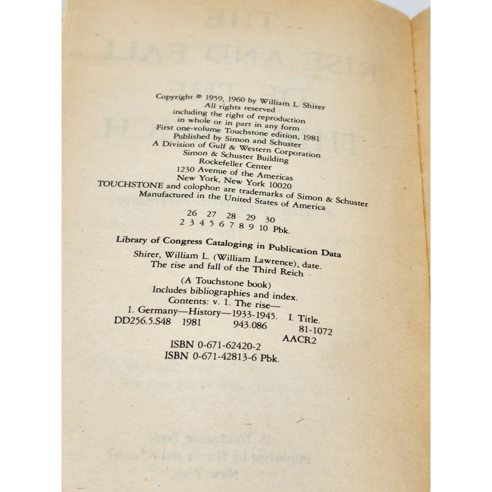 Rise And Fall Of Third Reich A History Of Nazi Germany By William L. Shirer 1960