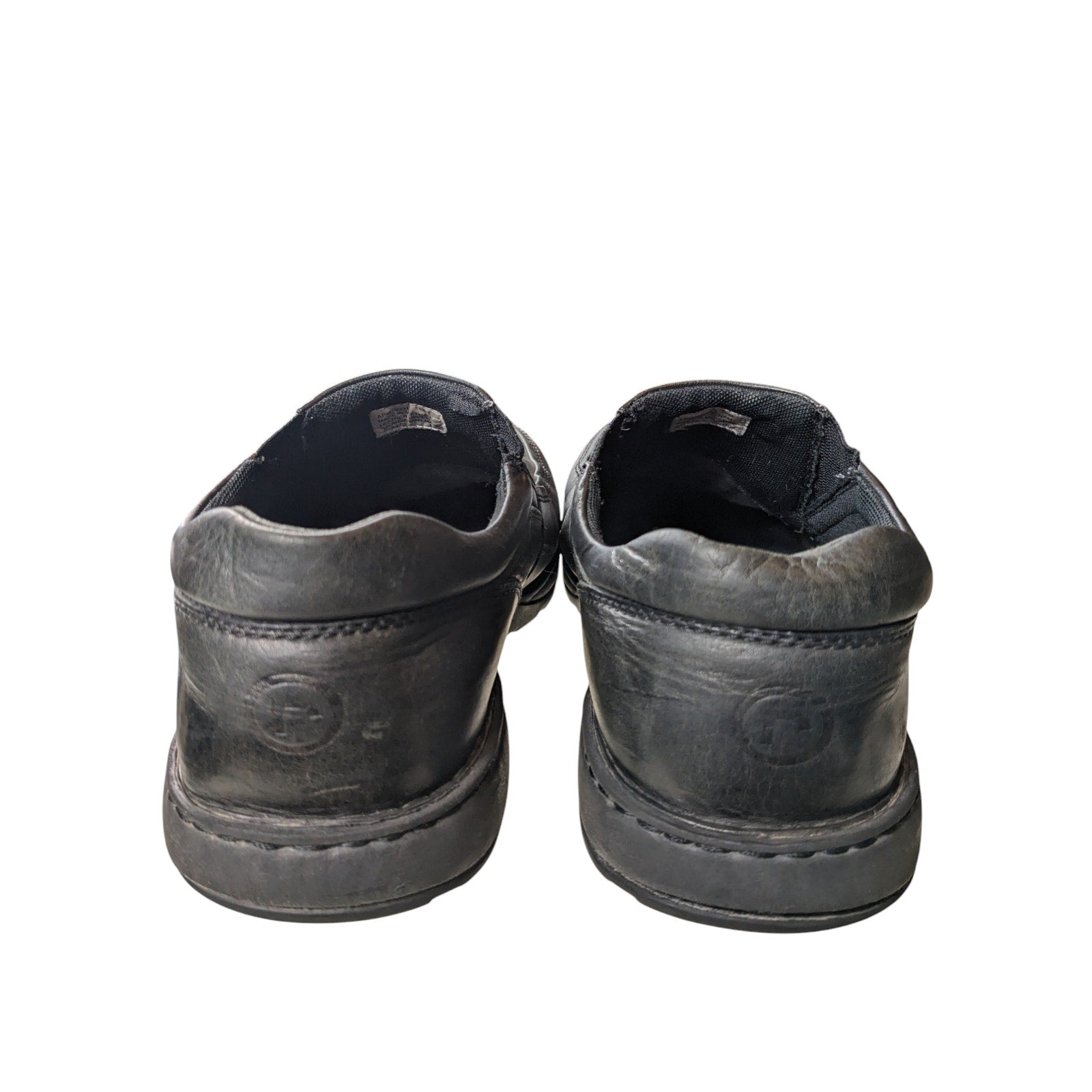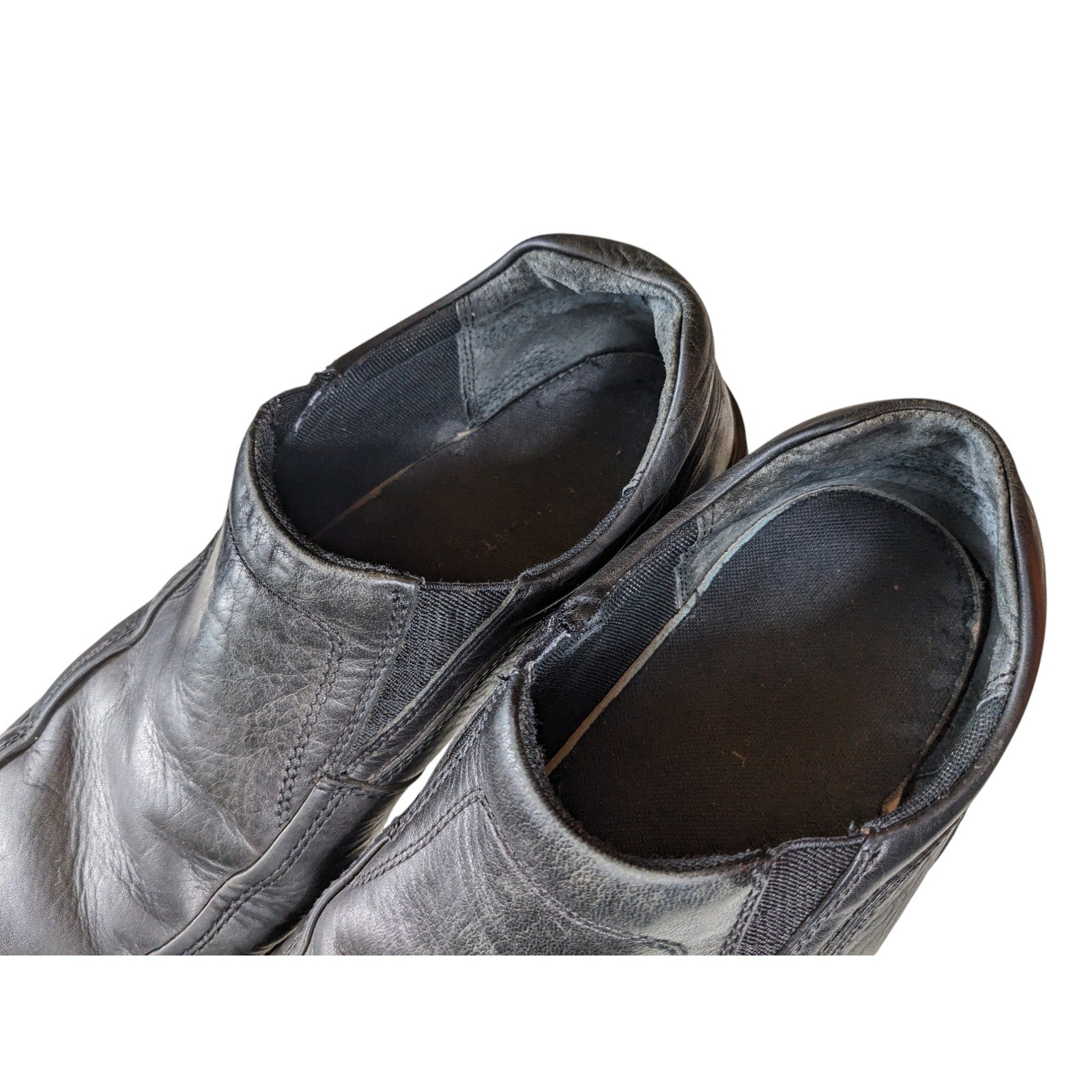Pre-owned. Fair condition with some wear/scuffs and markings. Scuff marks present on the upper leather, particularly around the toe box. The inner lining shows signs of wear, but the soles remain in good condition with plenty of tread left. Review photos for details.