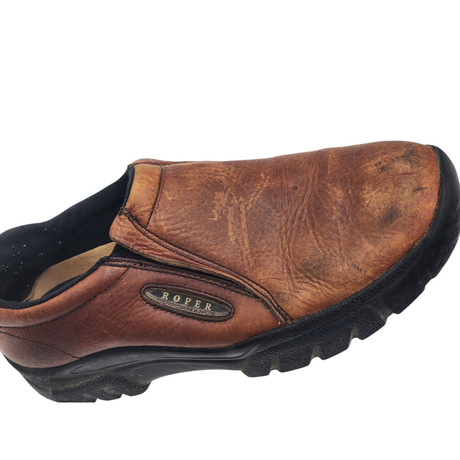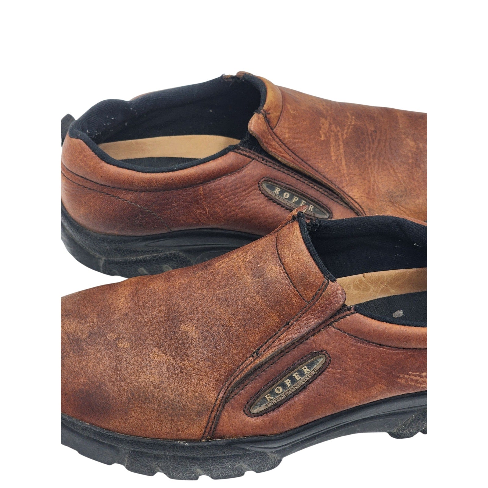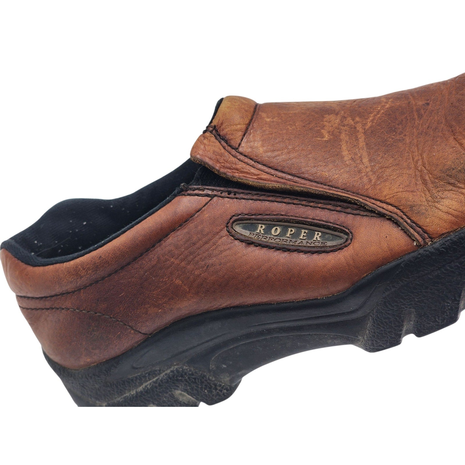 Roper Shoes Mens 12 Brown Leather Slip On Comfort Performance Casual Rugged Outdoor Loafers Western 09-020-0601-0206