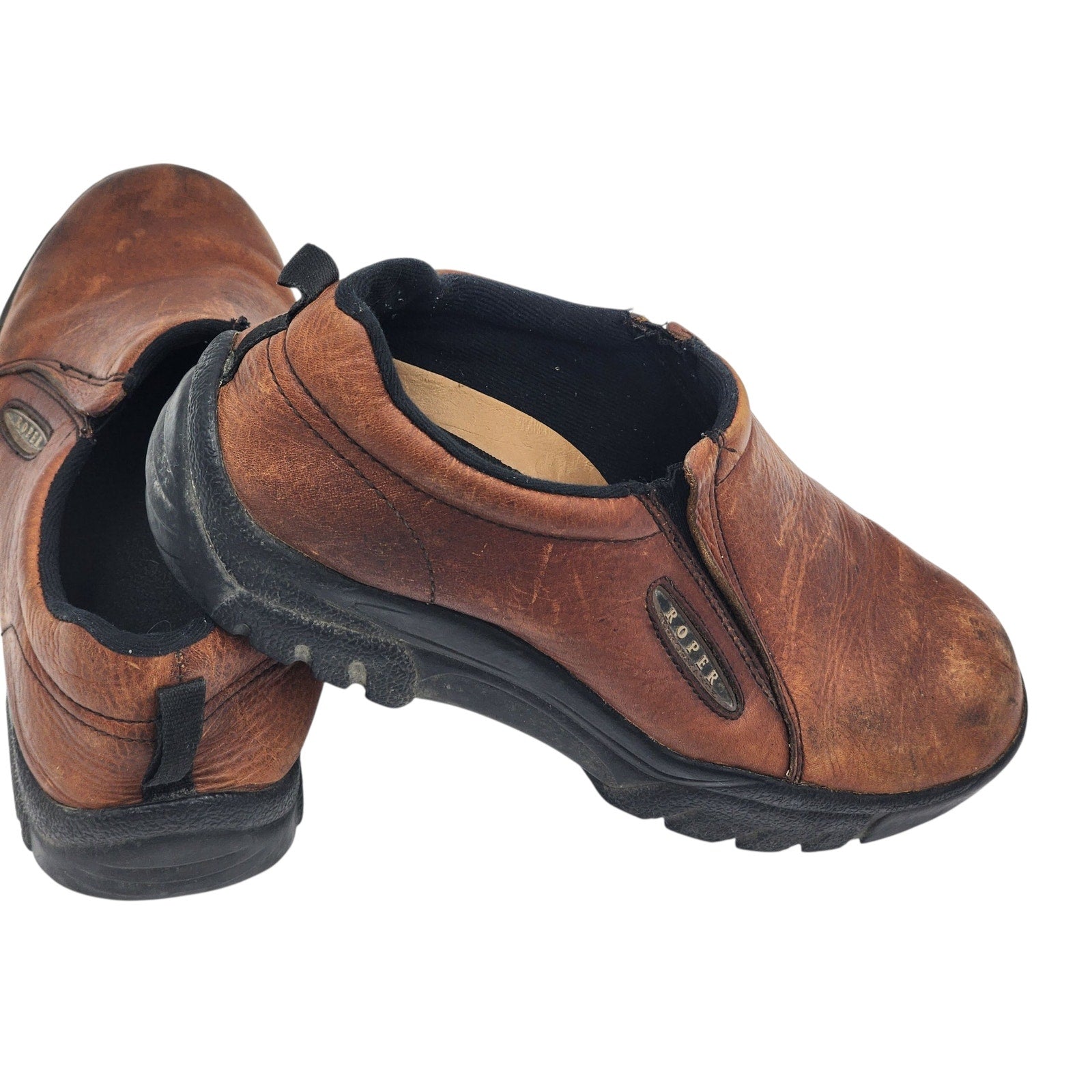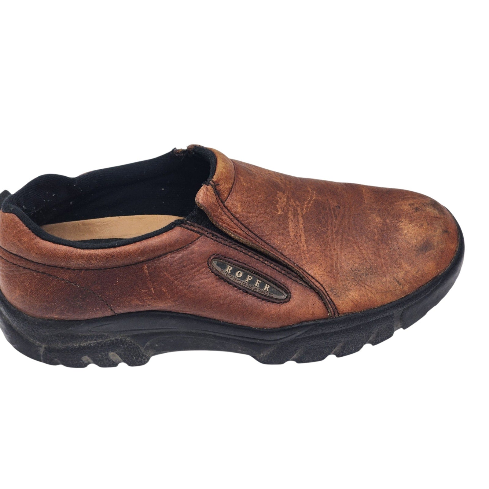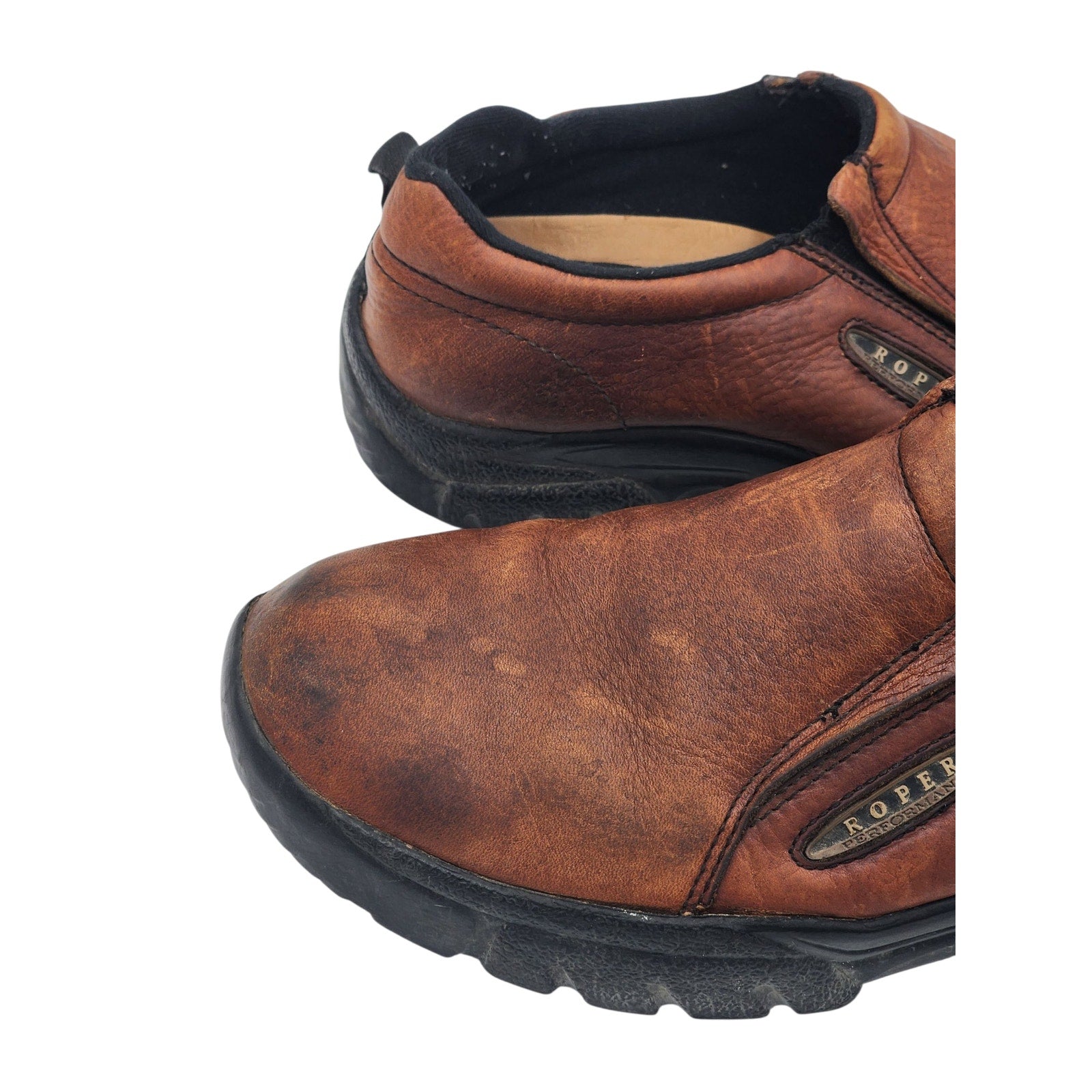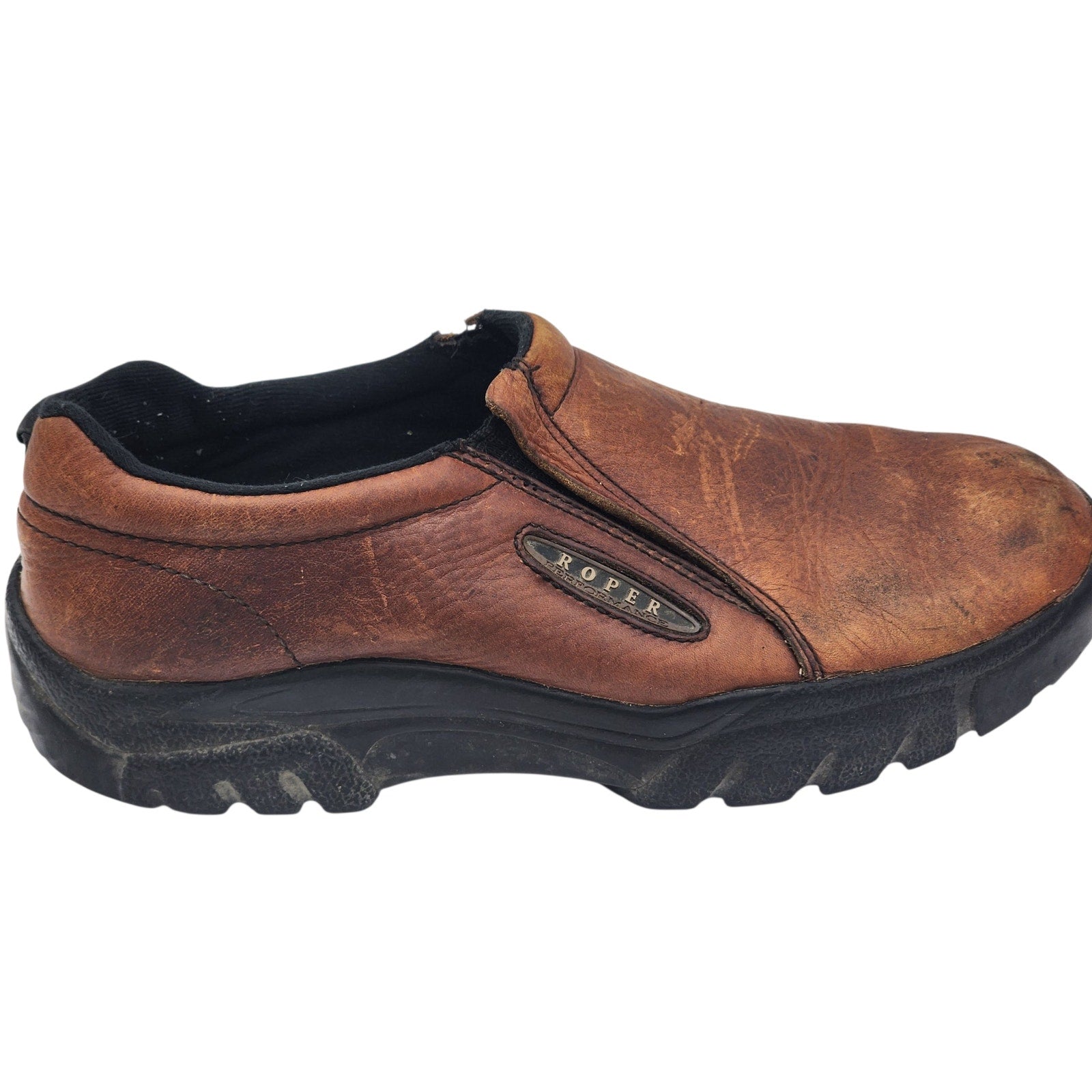 Roper Shoes Mens 12 Brown Leather Slip On Comfort Performance Casual Rugged Outdoor Loafers Western 09-020-0601-0206