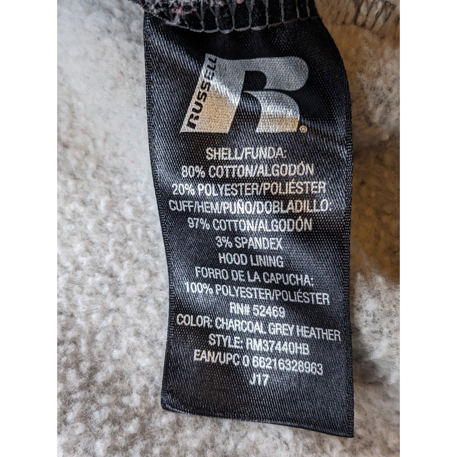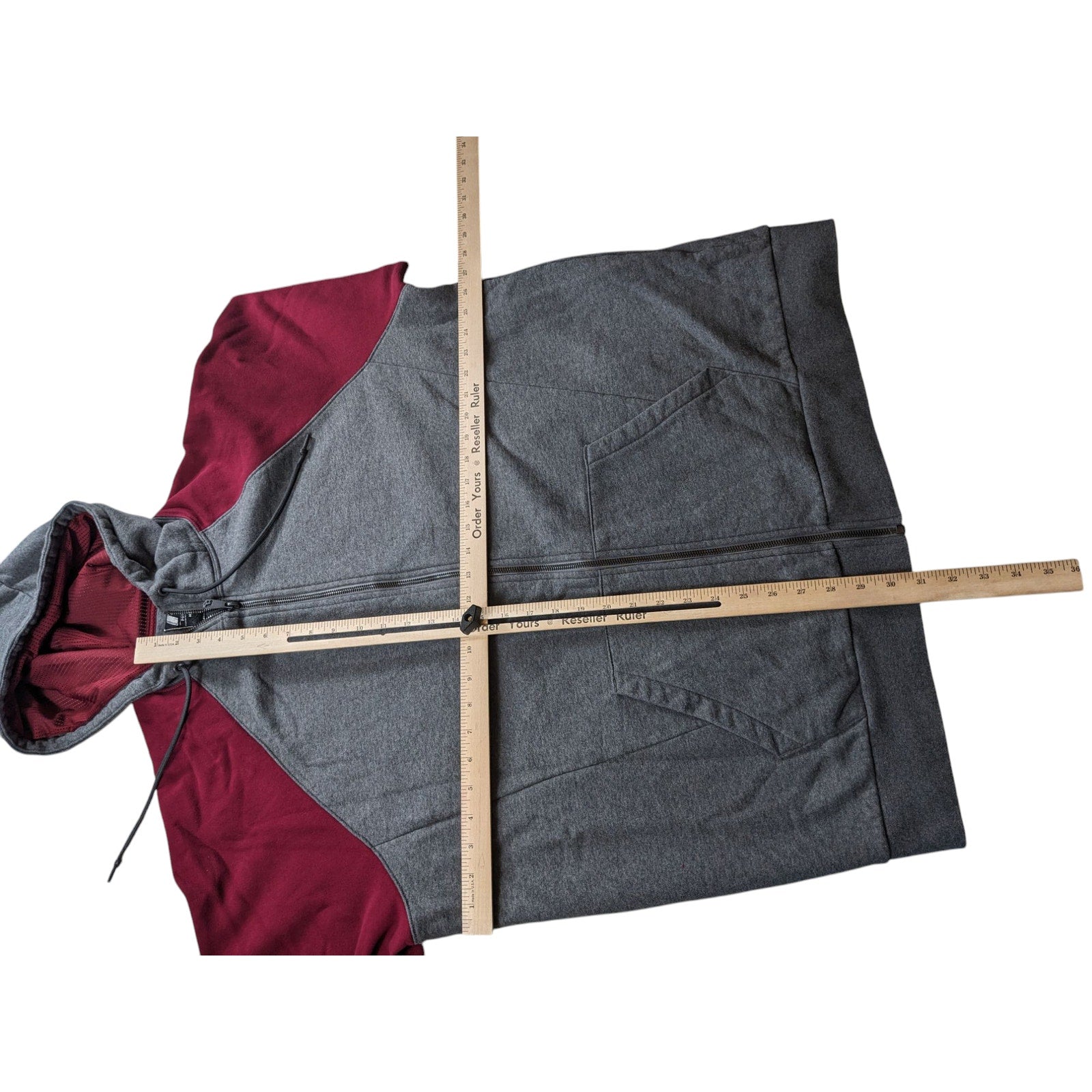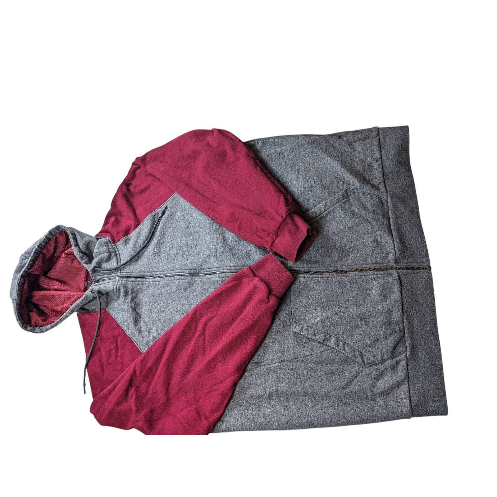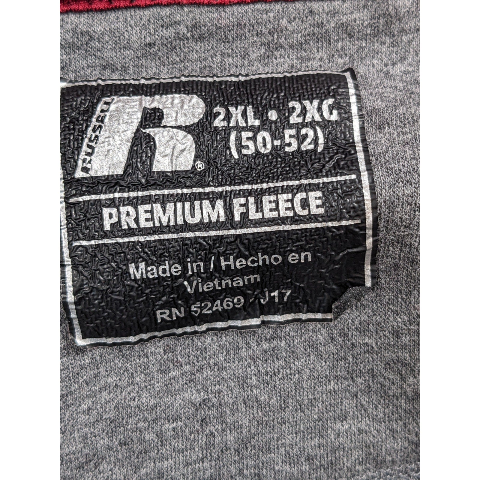Russell Hoodie Mens 2XL 50-52 Full Zip Premium Fleece Gray Maroon Athletic Long Sleeve Hooded Sweatshirt Kangaroo Pockets RM37440HB