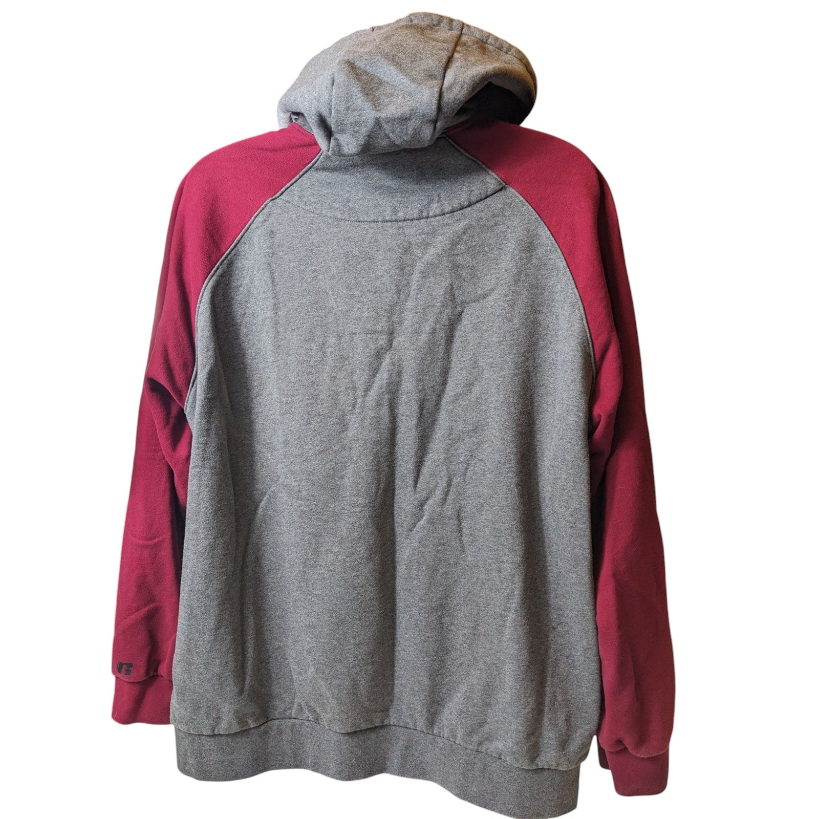 Russell Hoodie Mens 2XL Full Zip Premium Fleece Gray Maroon Hooded Sweatshirt