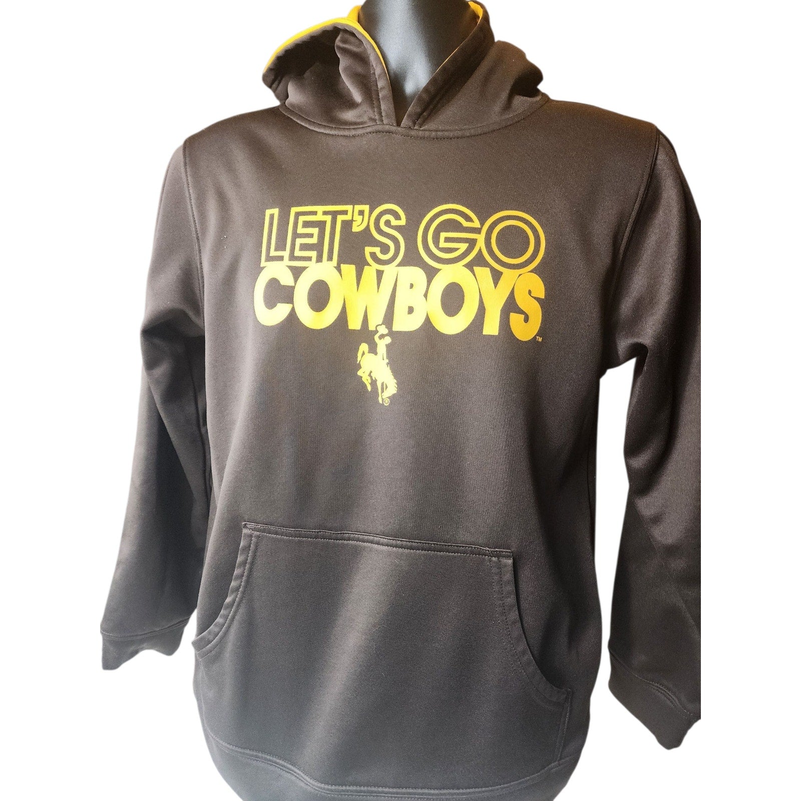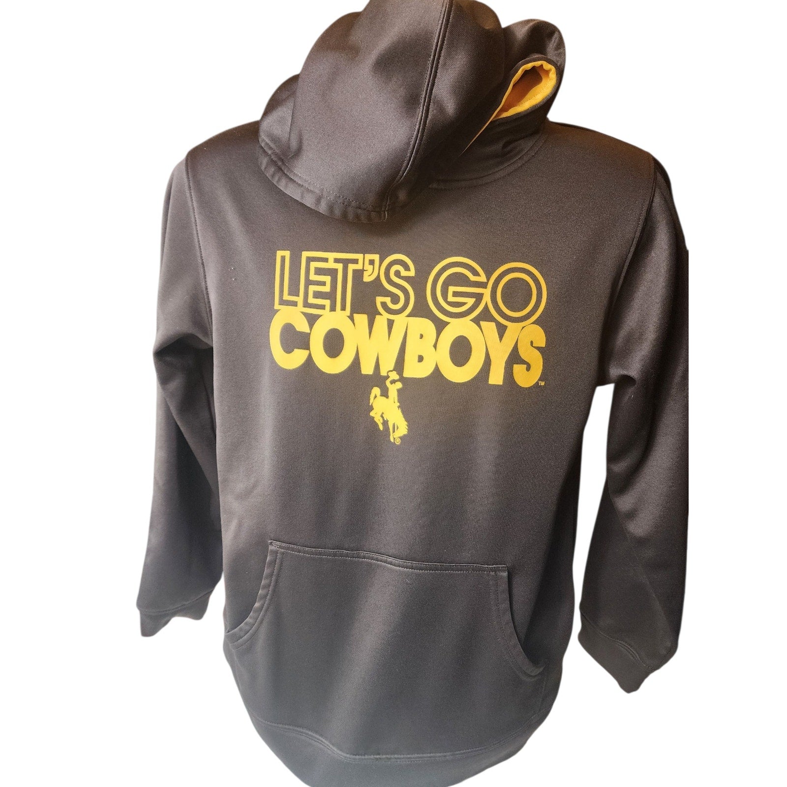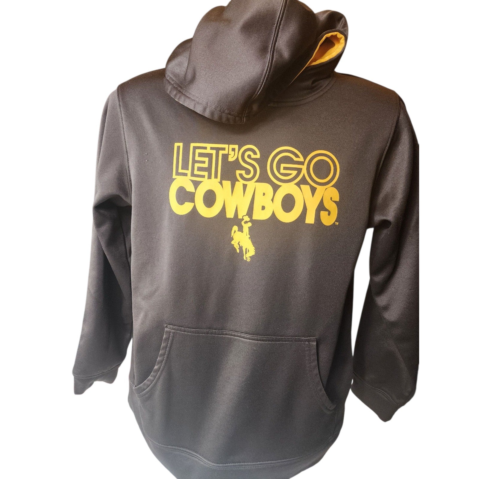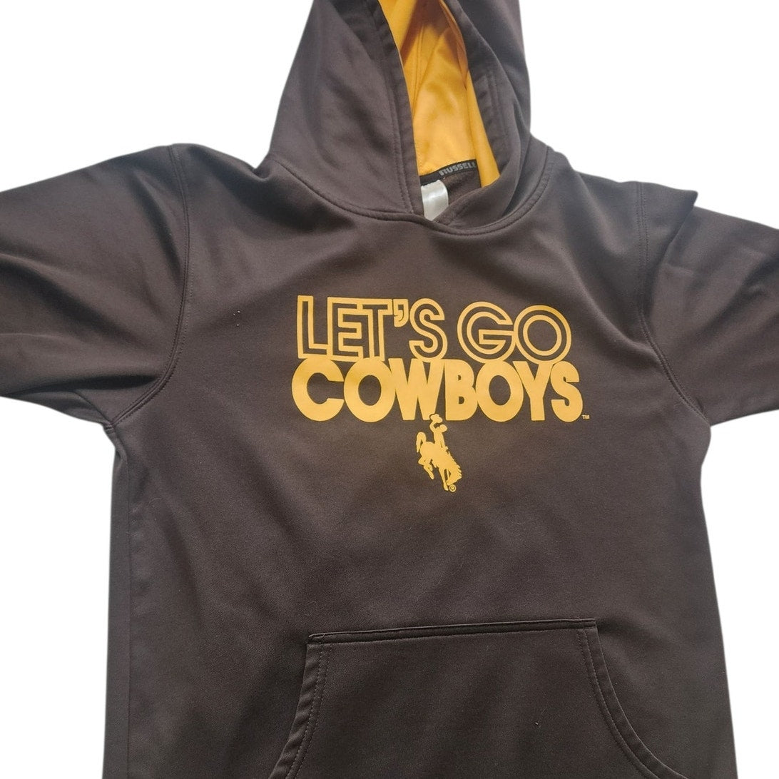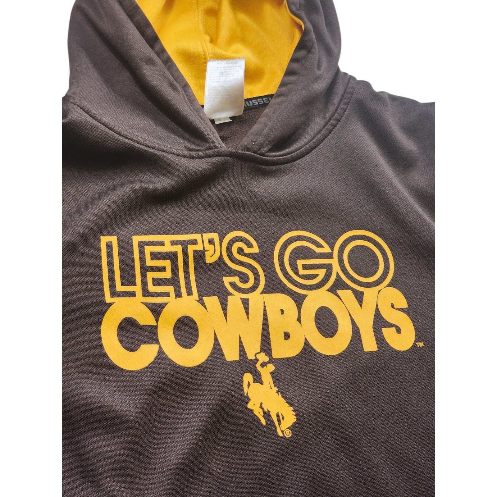Russell Hoodie Youth XL Mens Small Womens Medium University Wyoming Cowboys Brown Gold Lets Go Cowboys Pullover Sweatshirt Football Team Spirit Collegiate Kangaroo Pocket