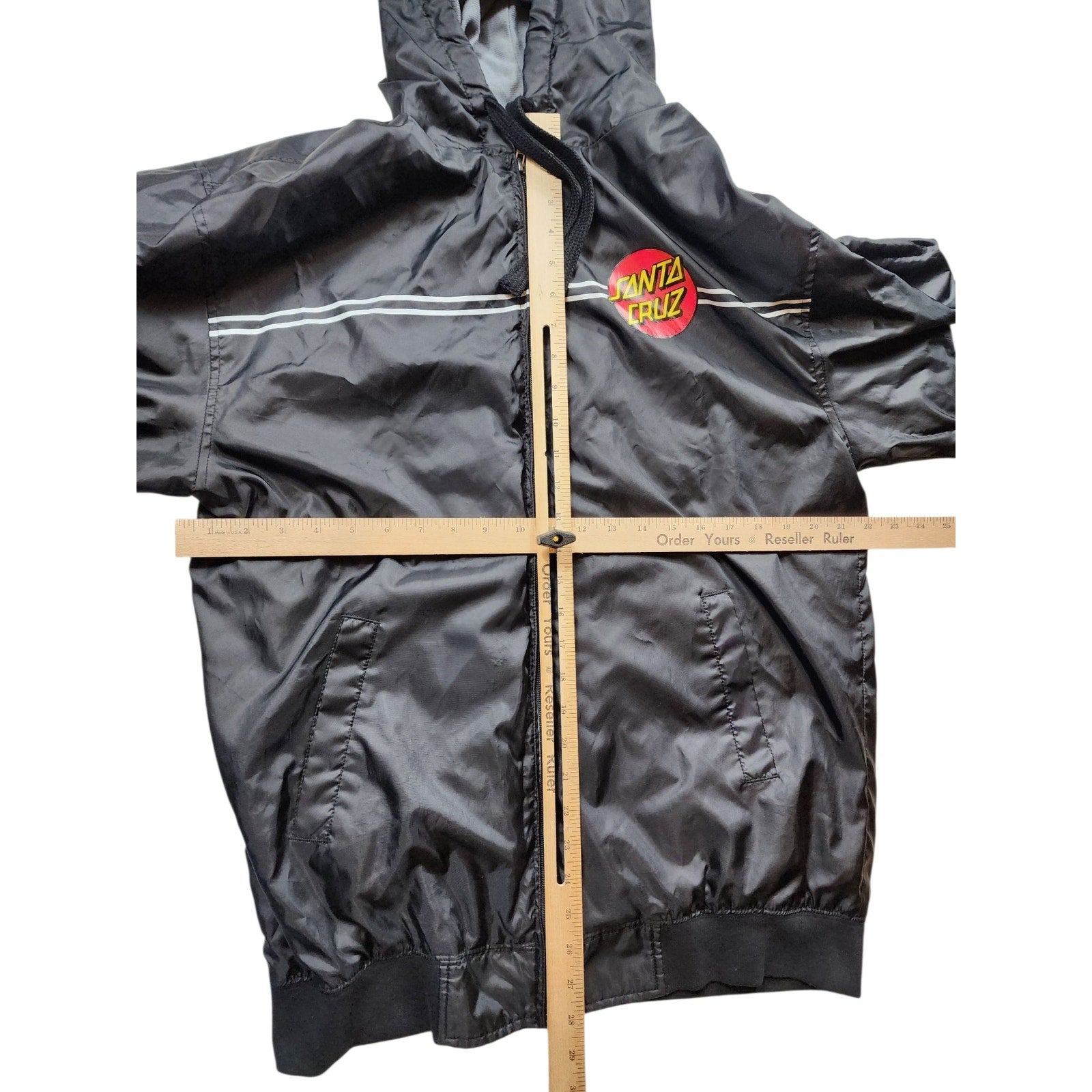 Santa Cruz Skateboards Windbreaker Mens Large Black Jacket Full Zip Hooded Polyester Reflective Stripe Logo Streetwear Layering Y2K Grunge