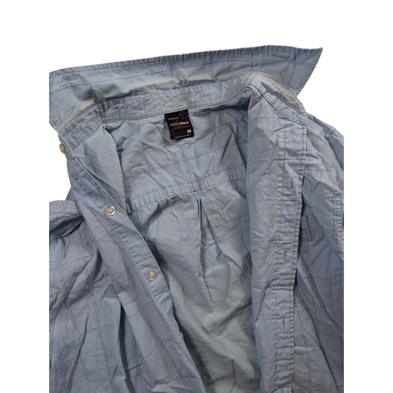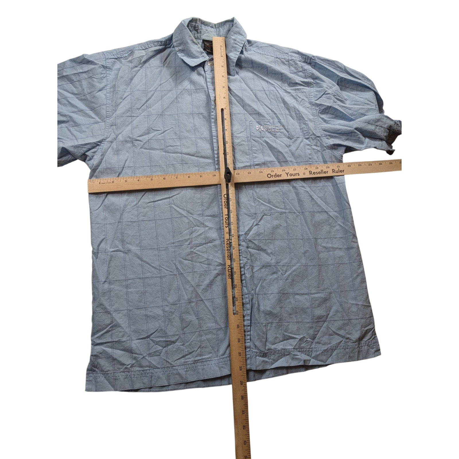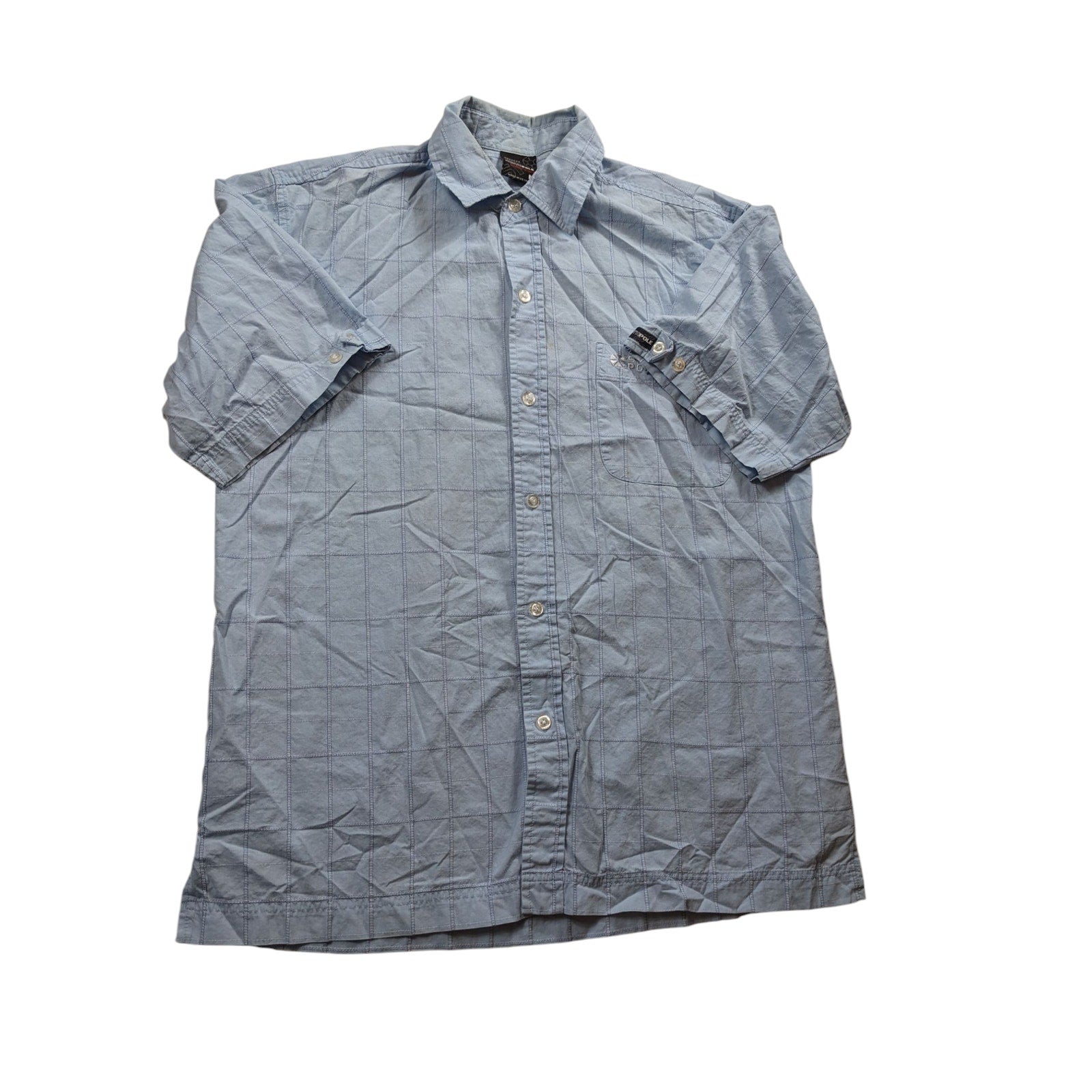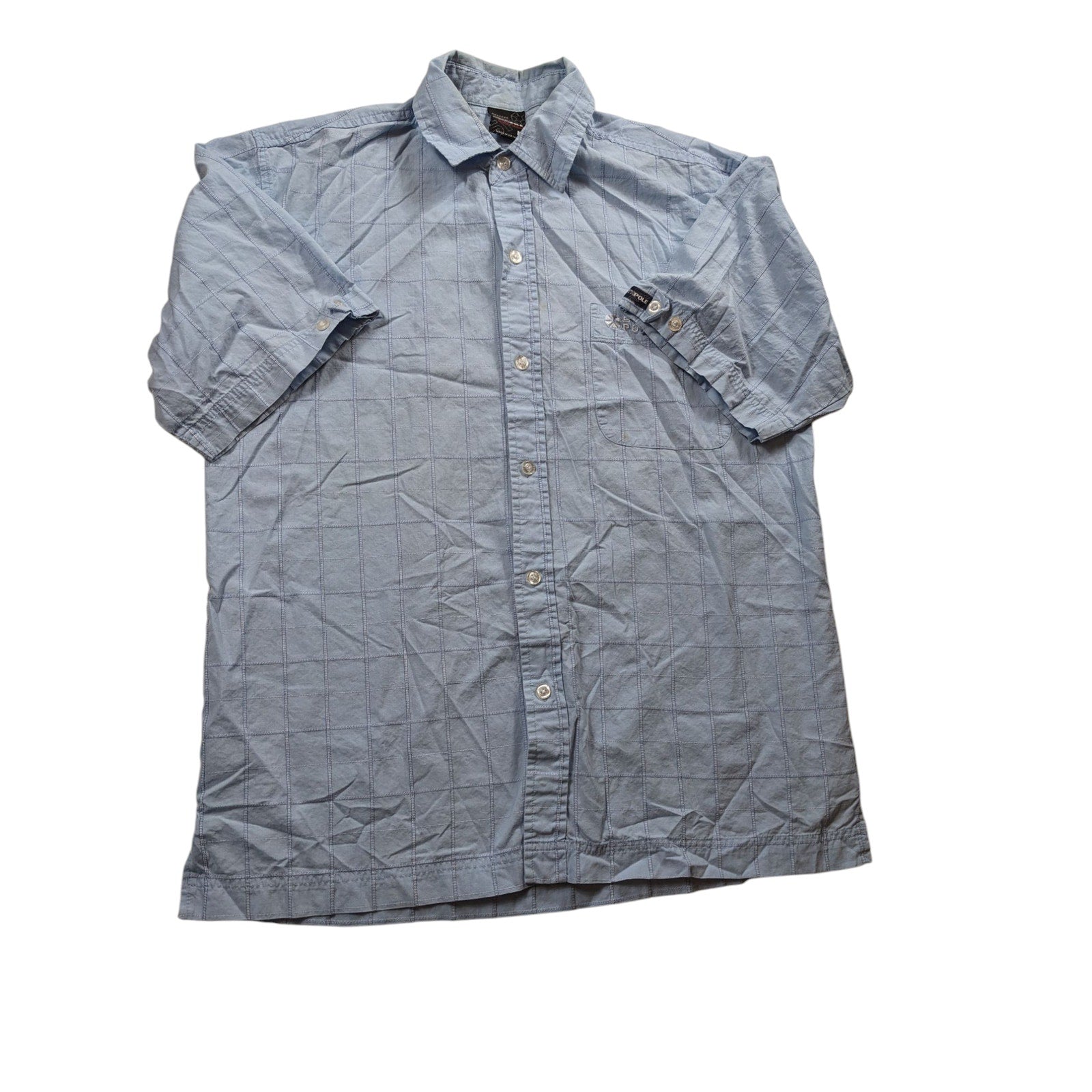 Southpole Shirt Mens Medium Blue Short Sleeve Button Up Checkered Grid Pattern Plaid Collared Lightweight Streetwear