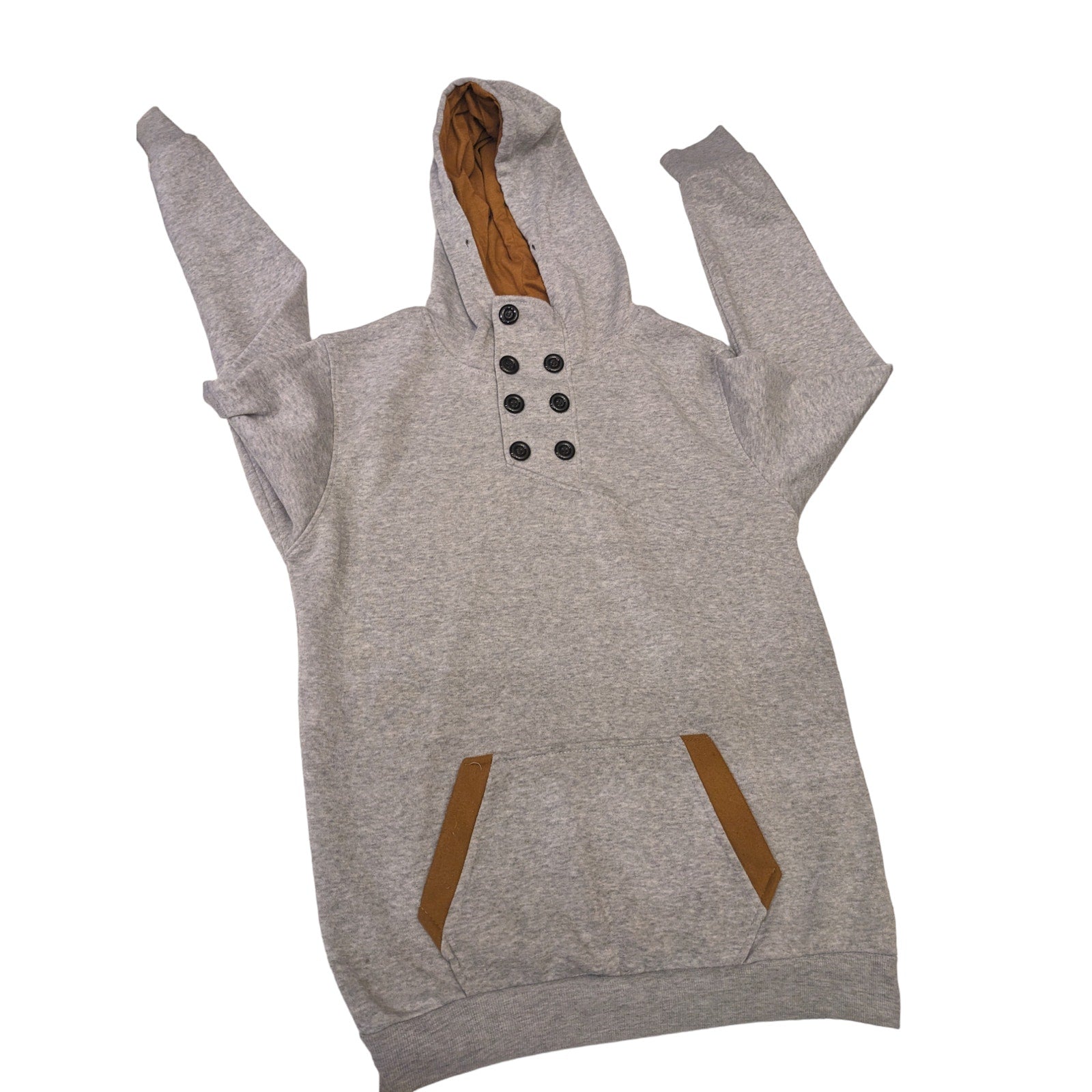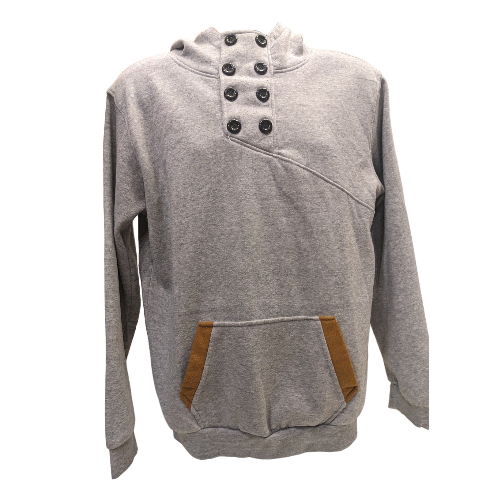 SPOP Hoodie Sweatshirt Womens XXL Pullover Buttons Gray Brown Athleisure Urban