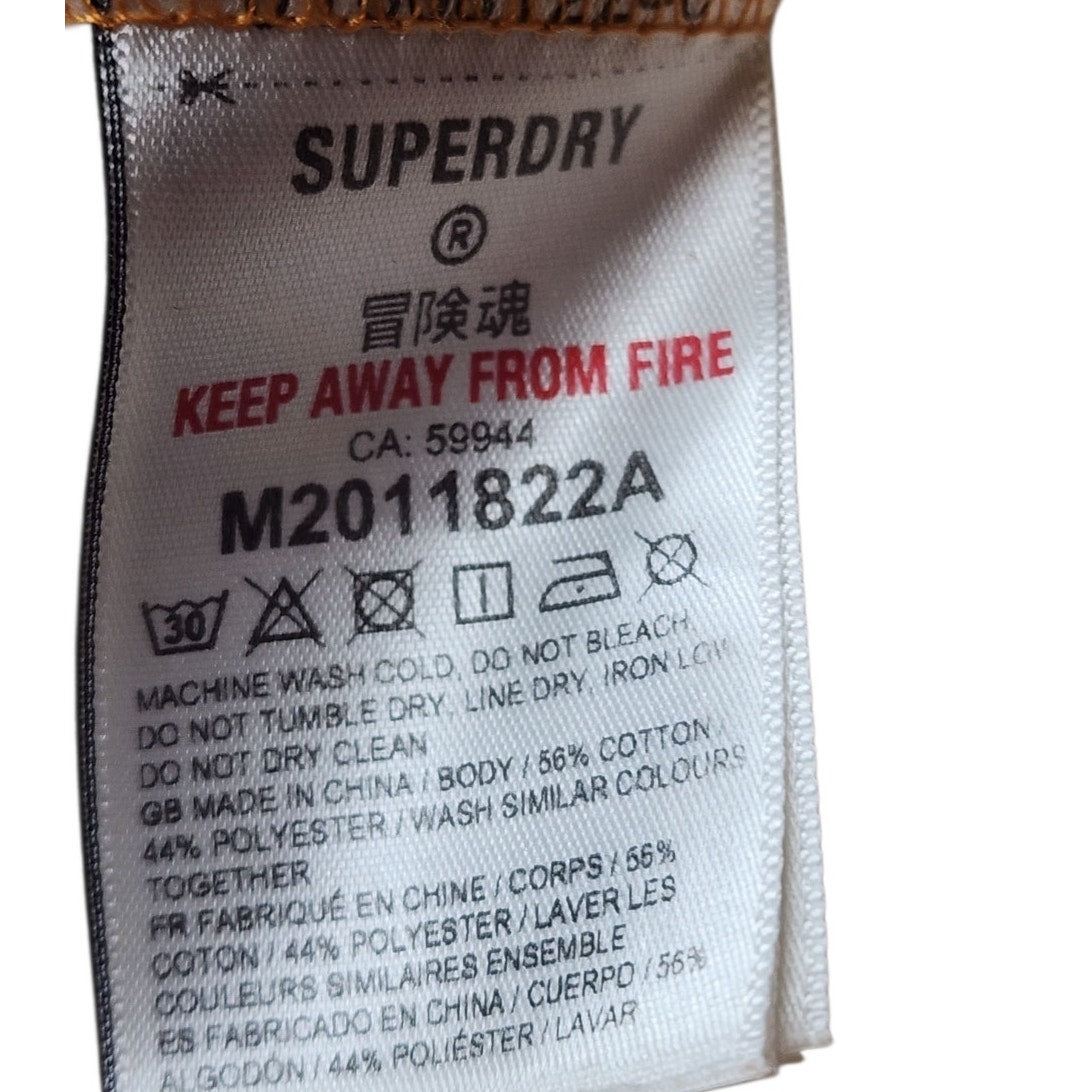 Superdry Hoodie Mens XL Womens 2XL Real Japan Pullover Sweatshirt Tan Orange Blue Logo Graphic Soft Fleece Streetwear Kangaroo Pocket