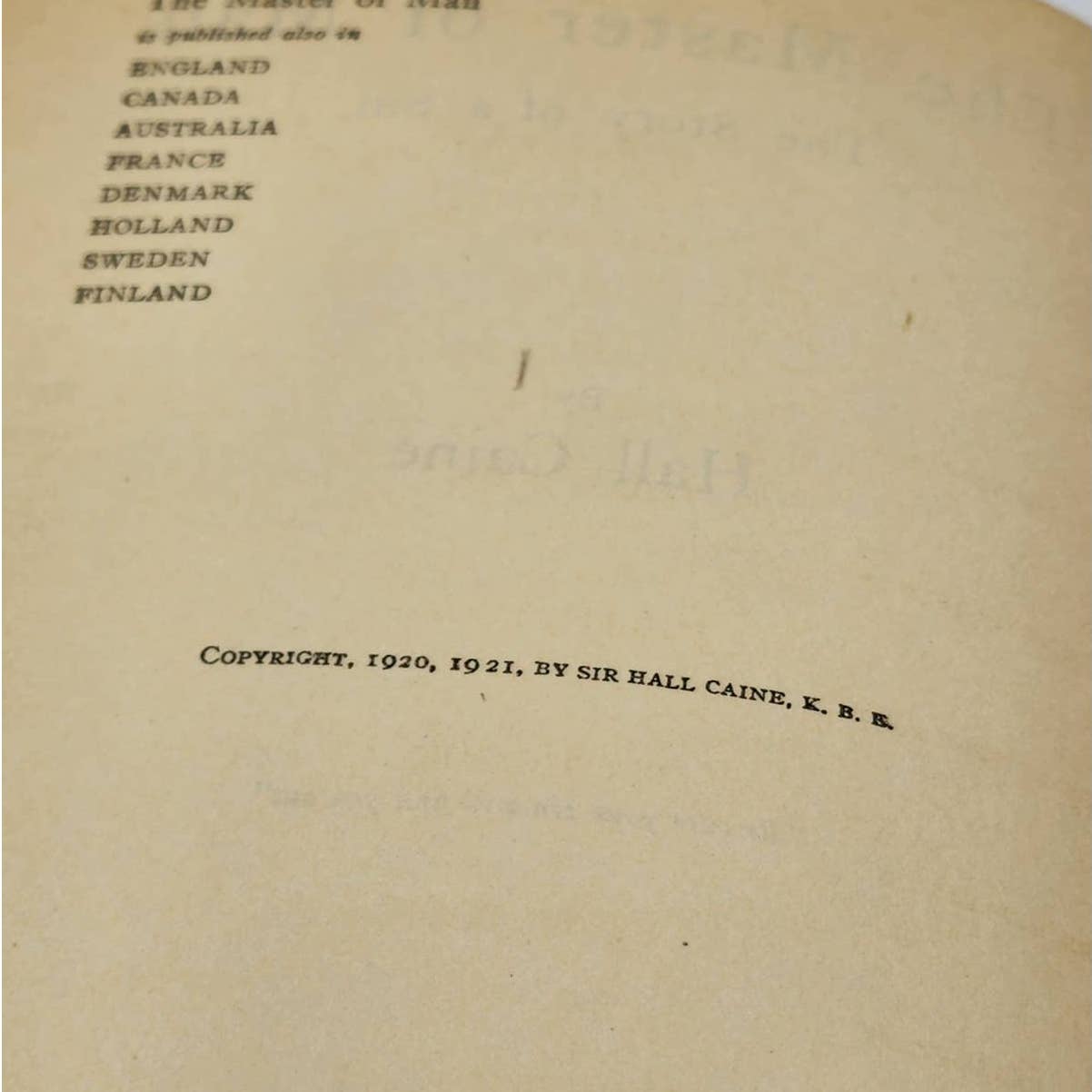 The Master Of Man The Story Of Sin By Hall Caine, Antique Antiquarian Book 1921