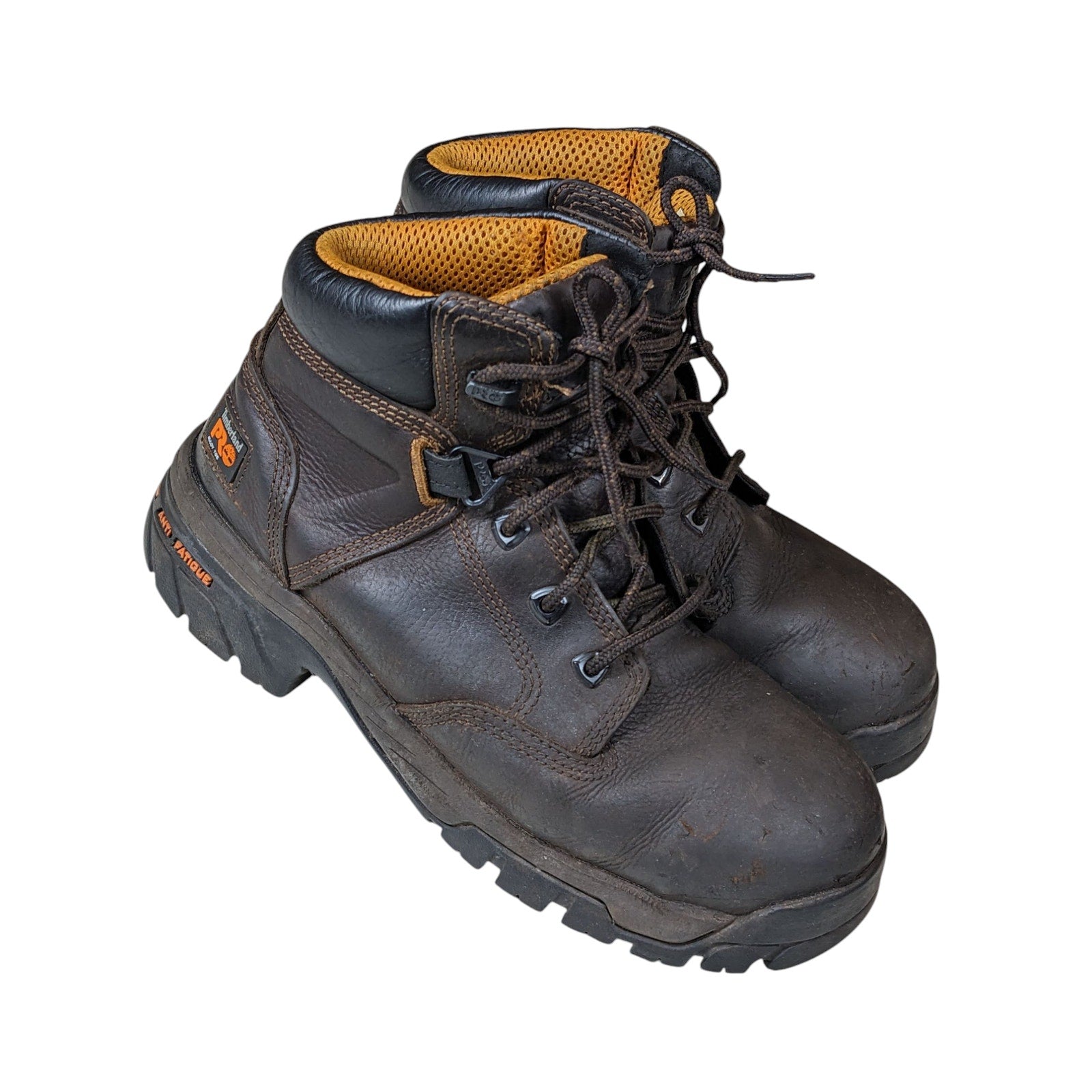 Timberland PRO Boots Mens 7.5M Work Brown Leather Steel Toe Safety Shoes Oil Slip Resistant 86518