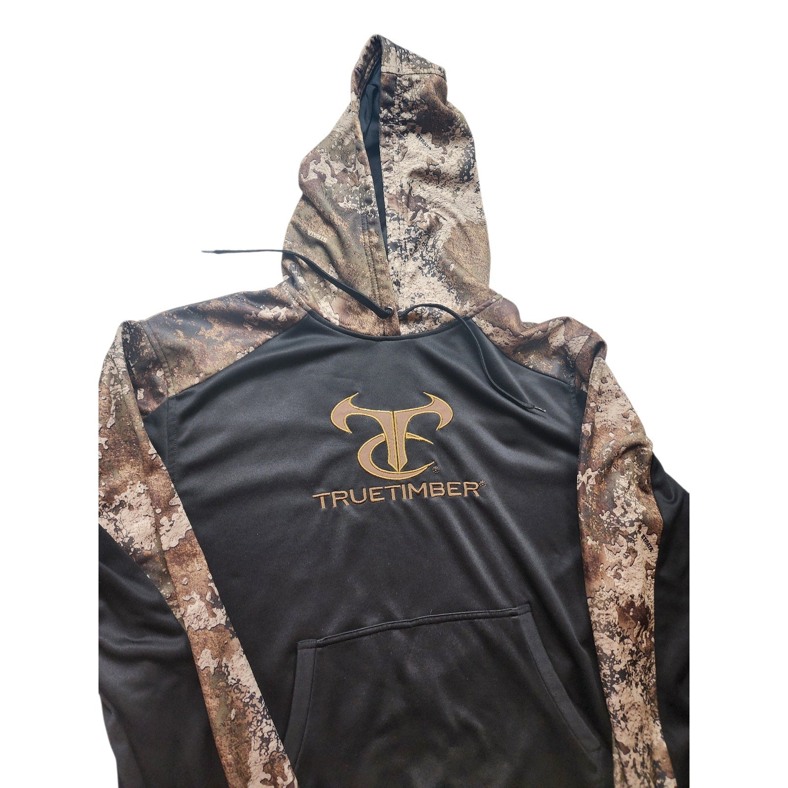True Timber Hoodie Mens Large Camo Black Pullover Strata Fleece Lined Hunting Sweatshirt