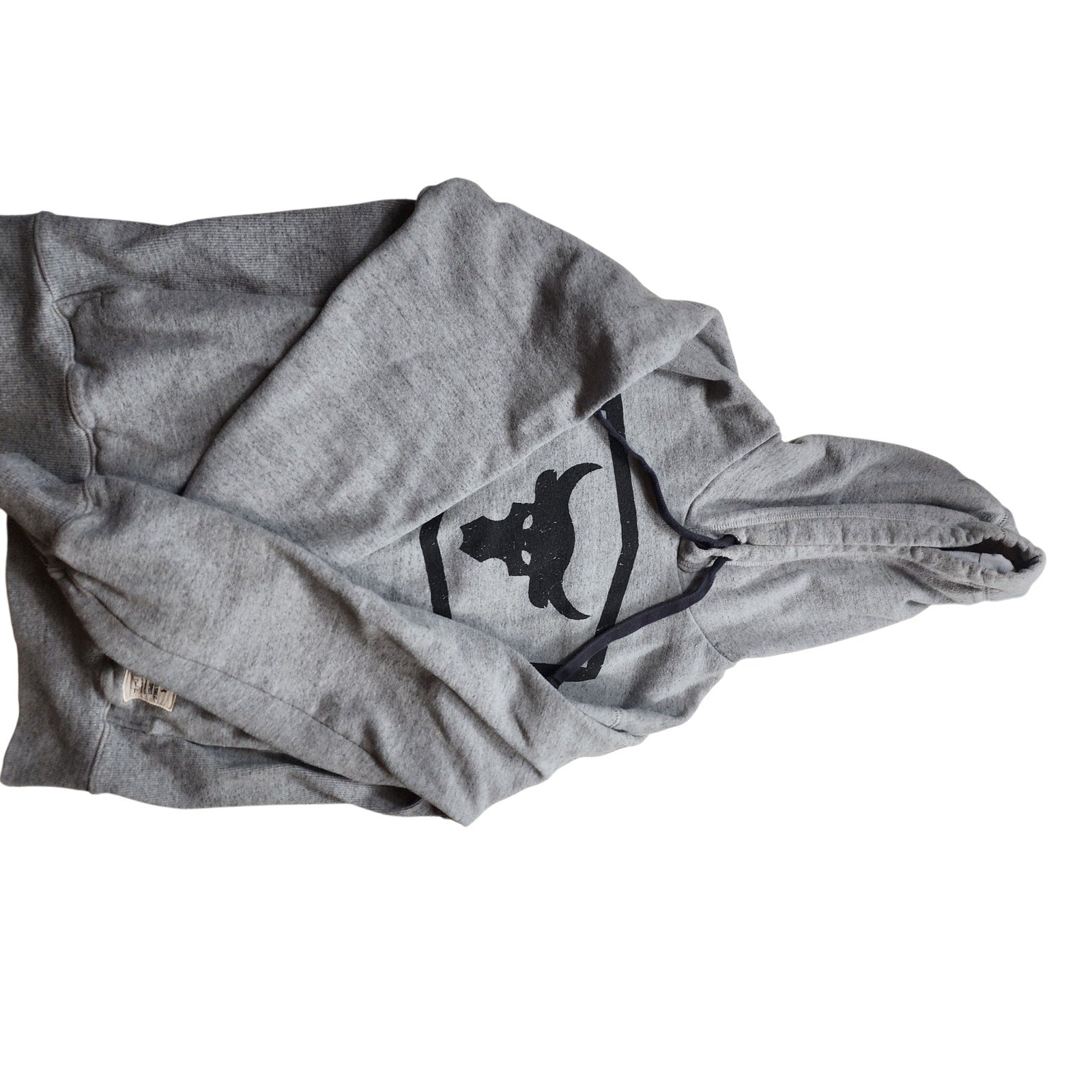 Under Armour Project Rock Hoodie Mens Medium Gray Sweatshirt Pullover Bull Logo Blood Sweat Respect Gym Training Fitness Athleisure