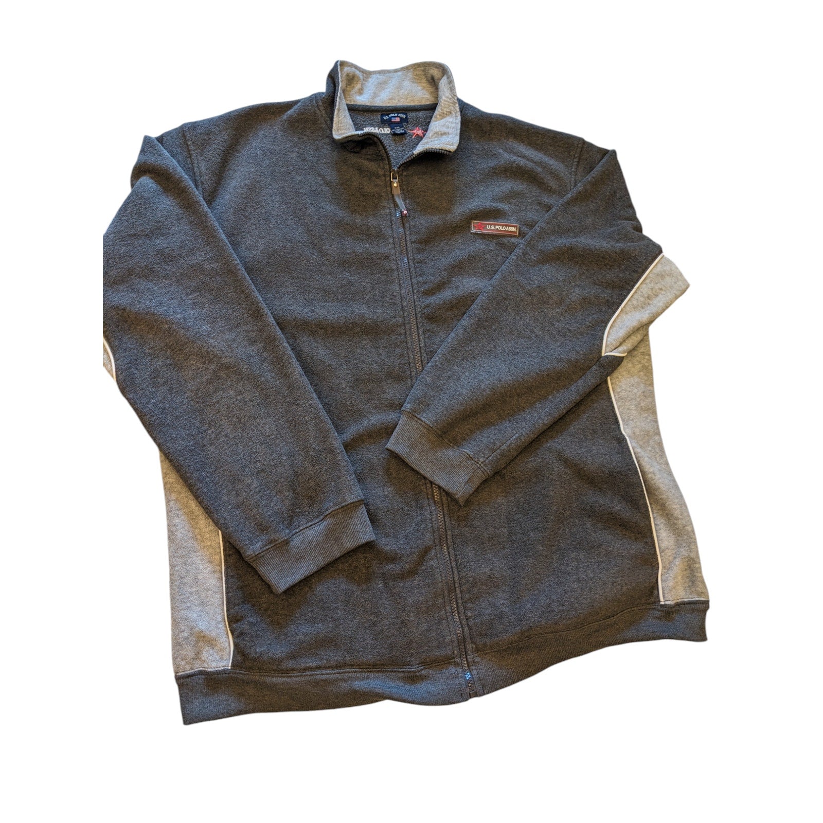 US Polo Assn Sweater Mens Size XXL Full Zip Fleece Jacket Gray Outerwear Sports Layering Sweatshirt
