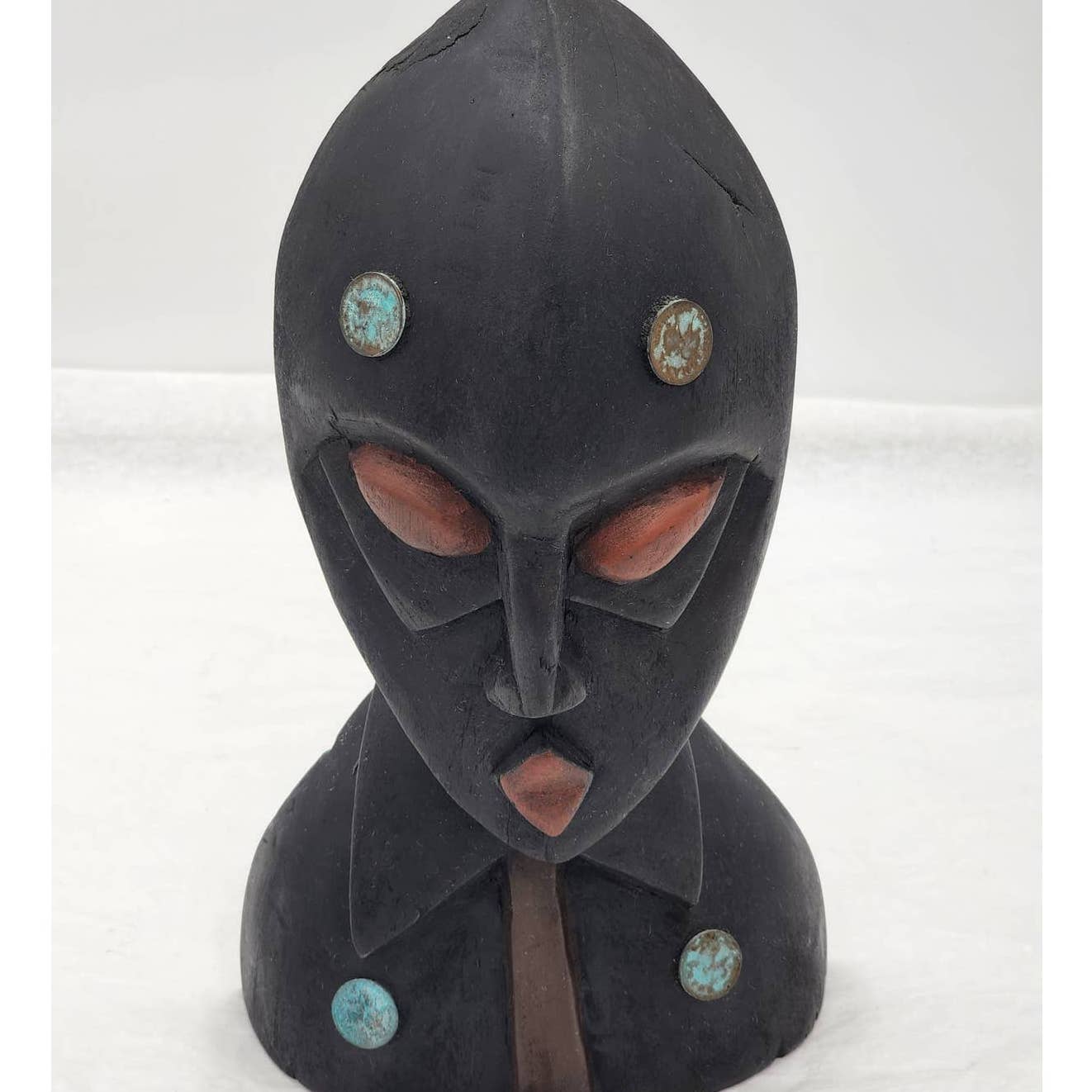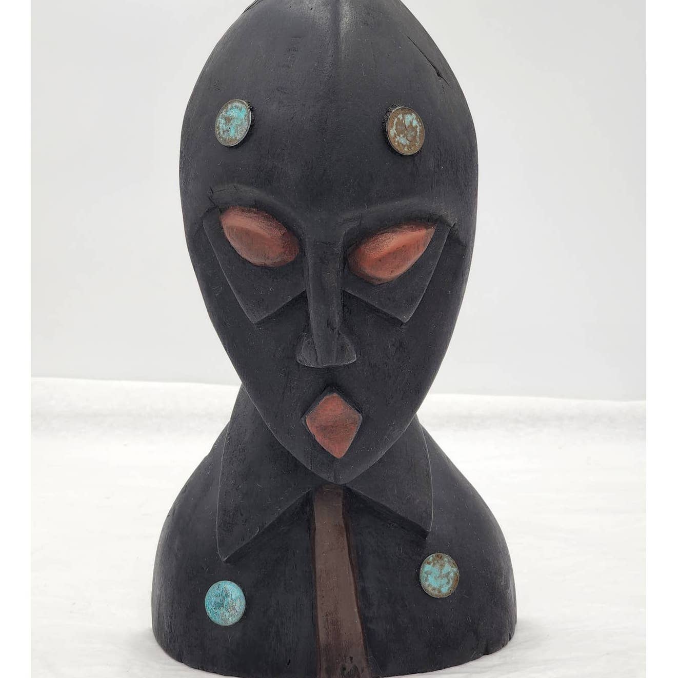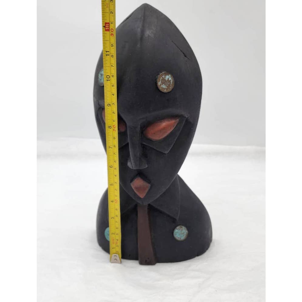 Vintage African Face Mask Tabletop Wooden Handcrafted Ghana West Africa 12.5" Tall