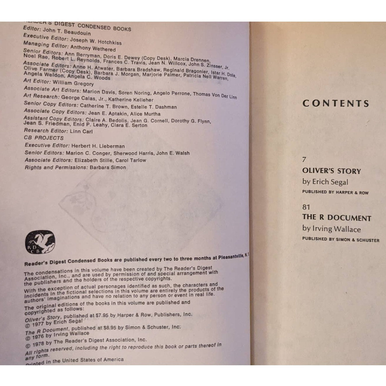 Vintage Best Sellers From Readers Digest Condensed Books 2 Volumes Olivers Story; R Document; Indian Summer of The Heart; Banker