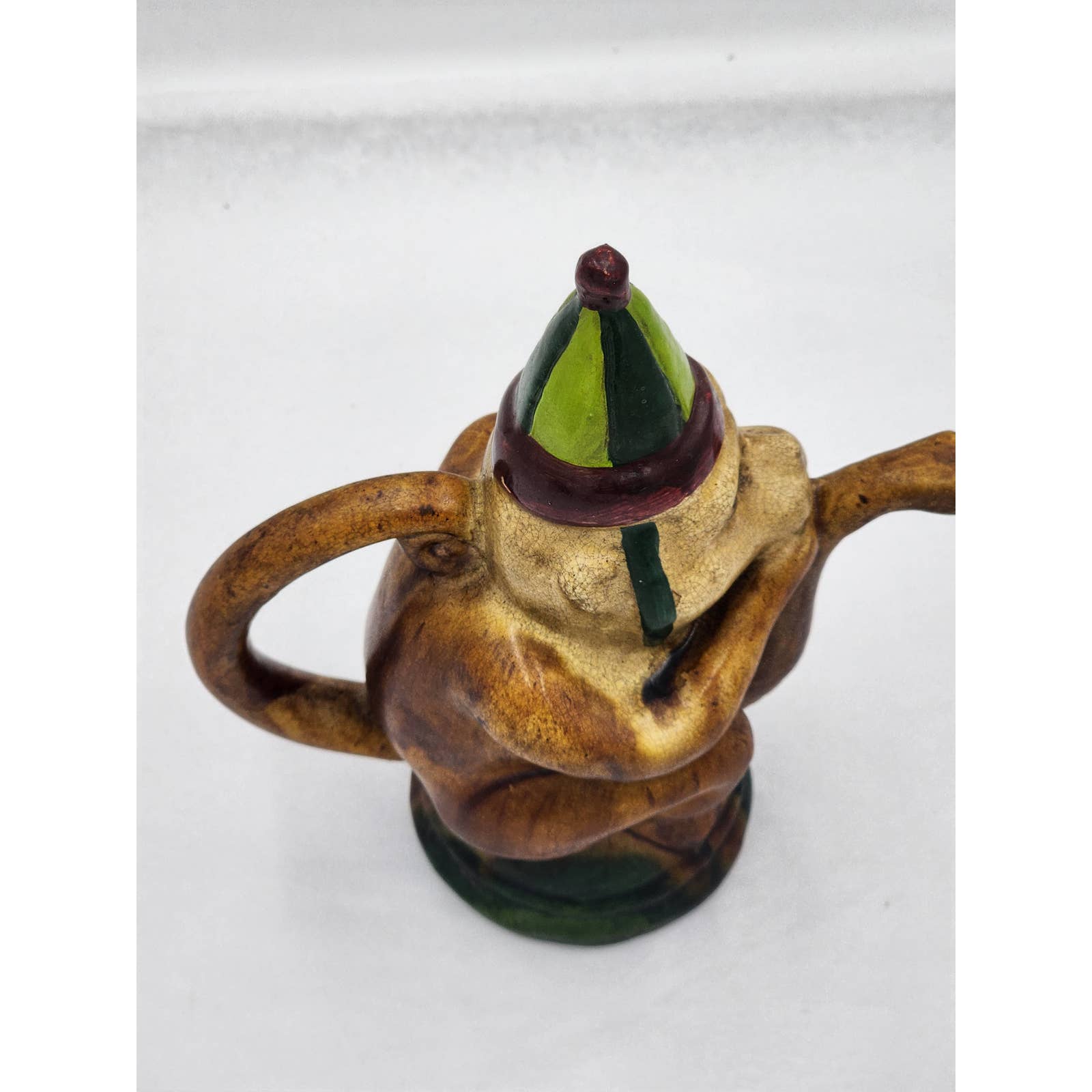 Vintage Circus Monkey Teapot Hat Music Harmonica Snake Spout Collectible Whimsical Rare Unusual Quirky Ceramic Figurine Nostalgic Appeal 9"
