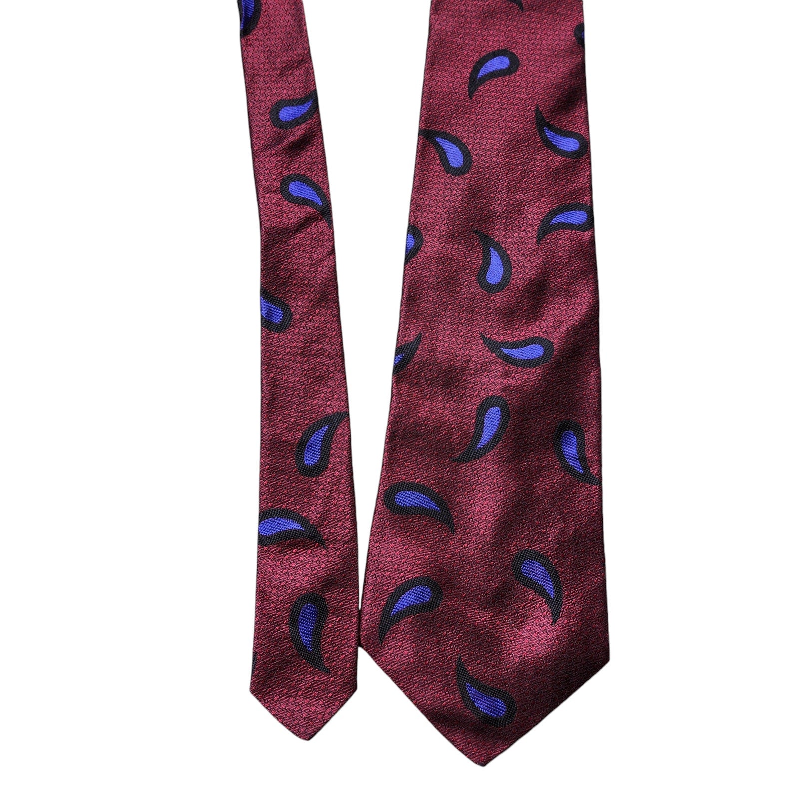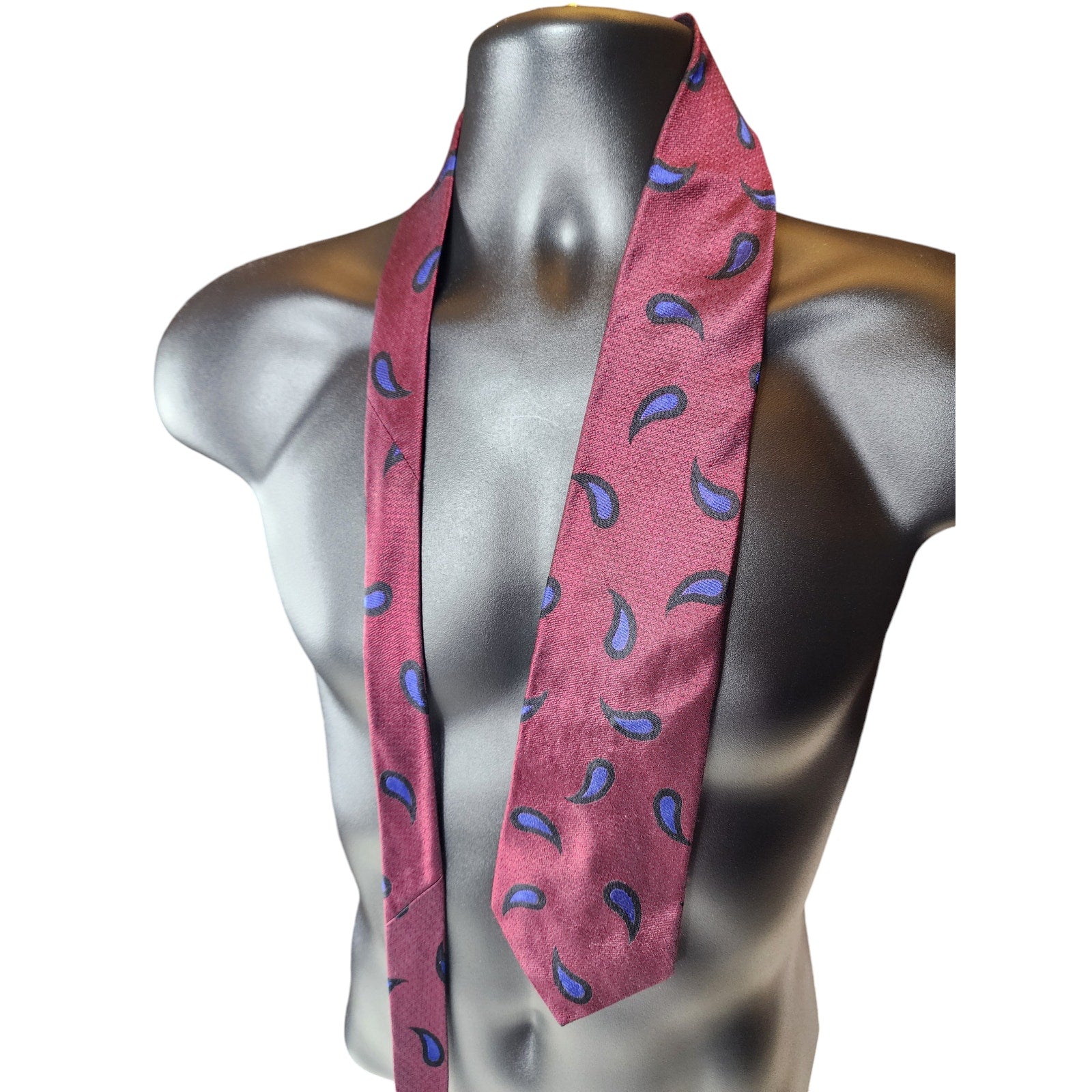 Vintage Perry Ellis Portfolio Mens Silk Tie Burgundy Paisley Print Made in Italy Neckwear Necktie