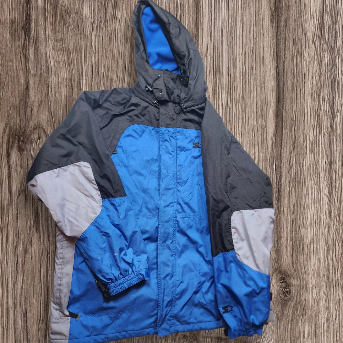 Vintage Starter Ski Jacket Mens Large Hooded Blue 90s Y2K Winter Coat Snow Retro