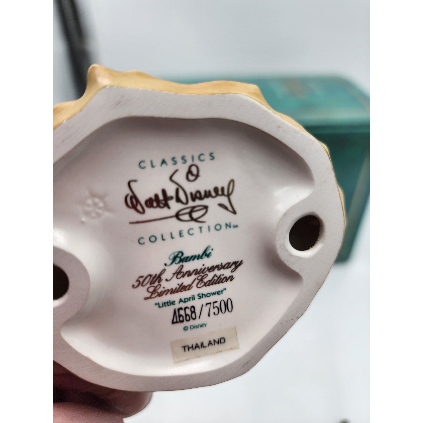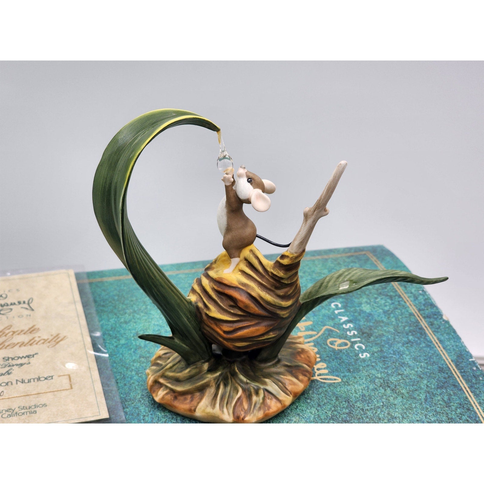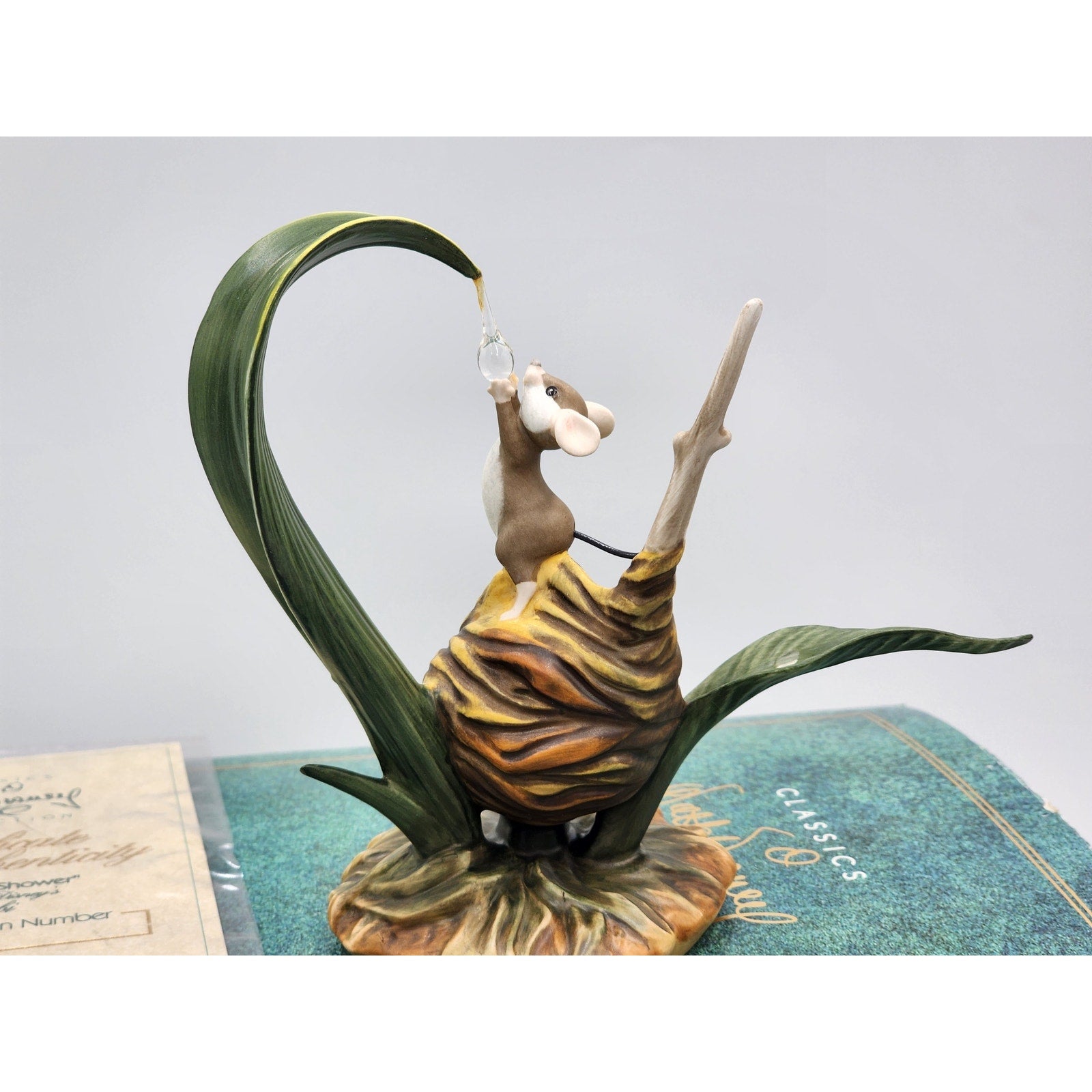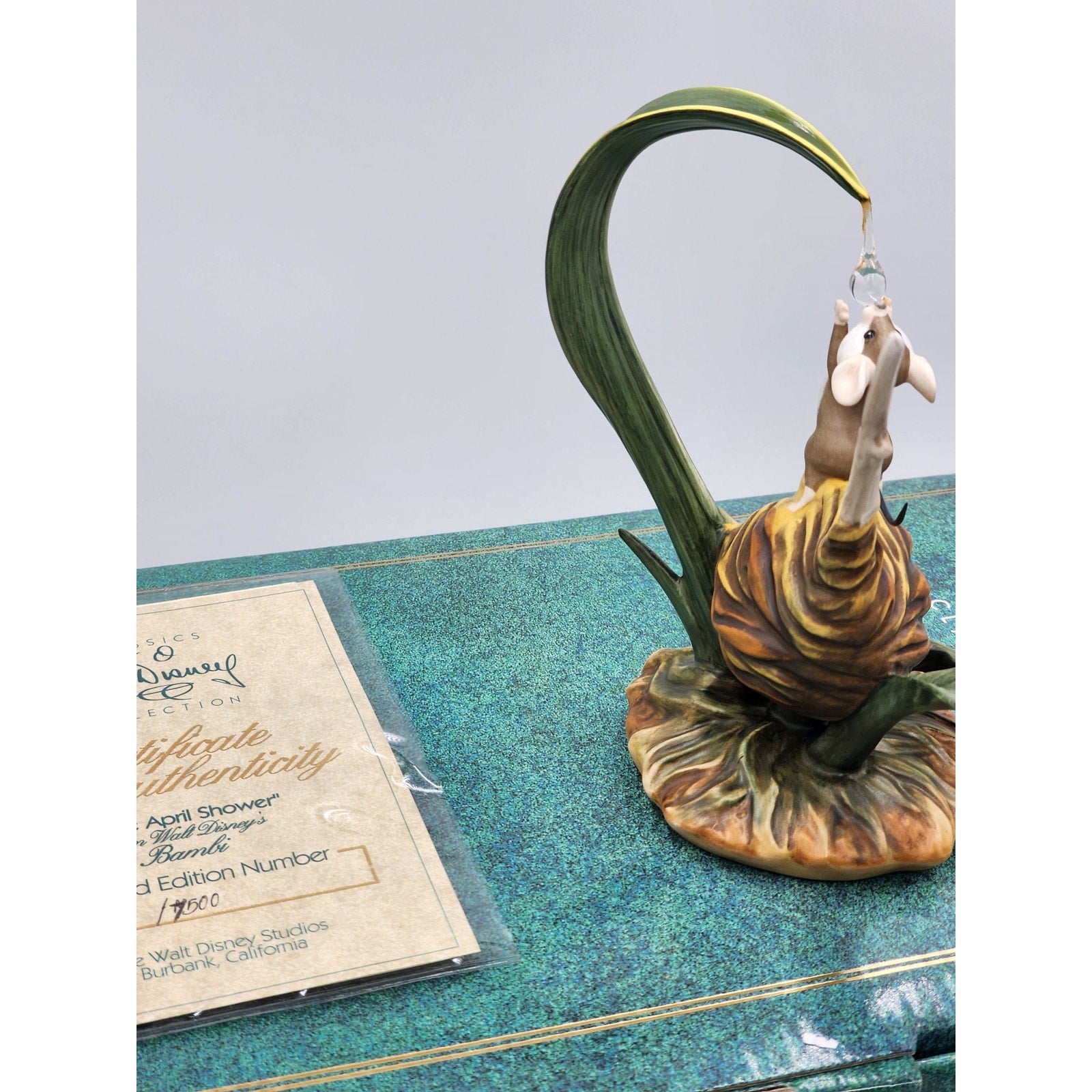 WDCC Bambi "Little April Shower" Field Mouse Figurine Limited Edition 4688/7500 50th Anniversary Leaf Raindrop Scene Disney Retired Vintage Collectible Box COA