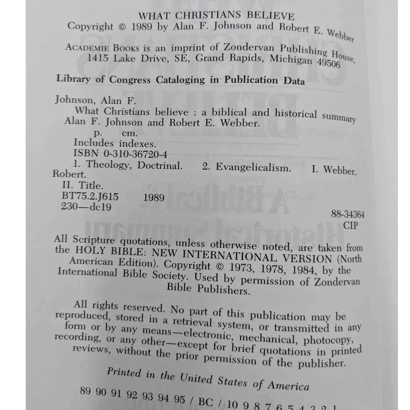 What Christians Believe A Biblical & Historical Summary Book By Alan F. Johnson Christian Theology Vintage 1989