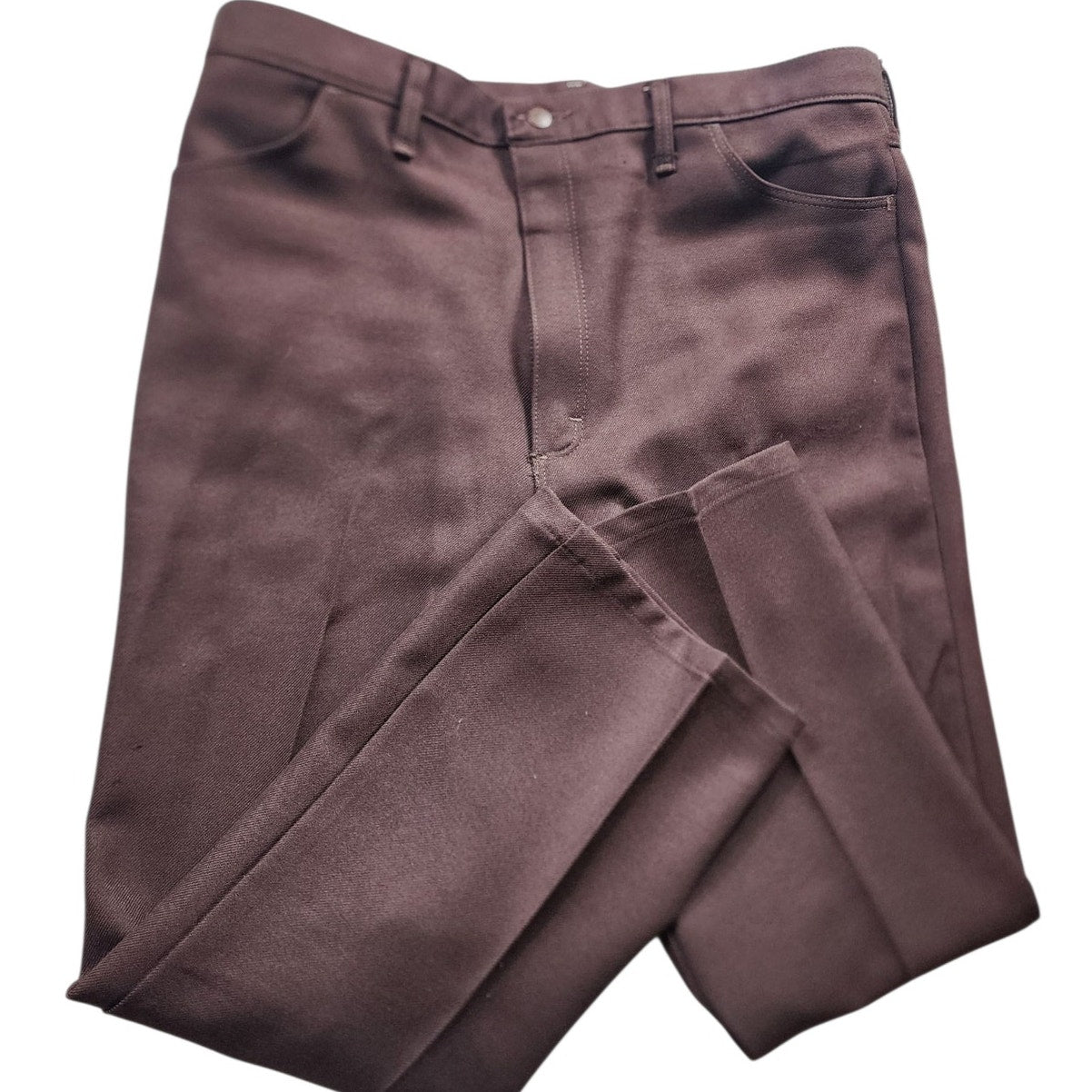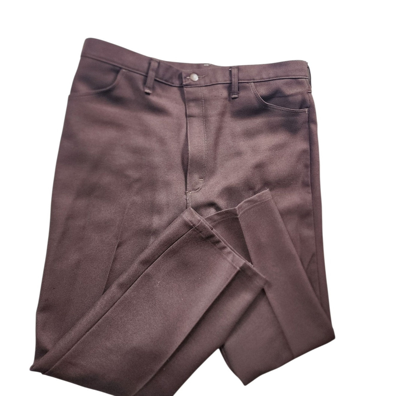 Wrangler Pants Mens 42x32 Brown Polyester Western Cowboy Rodeo Vintage USA Made High Rise Polyester Work Ranch Trousers Slacks 82BN