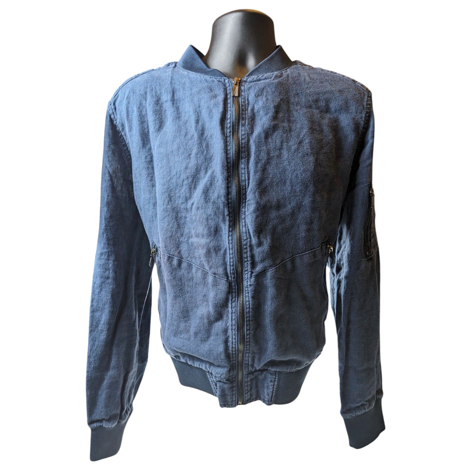 Zara Man Bomber Jacket Mens XXL Blue Lightweight Zip Up Casual Pockets Retro Style