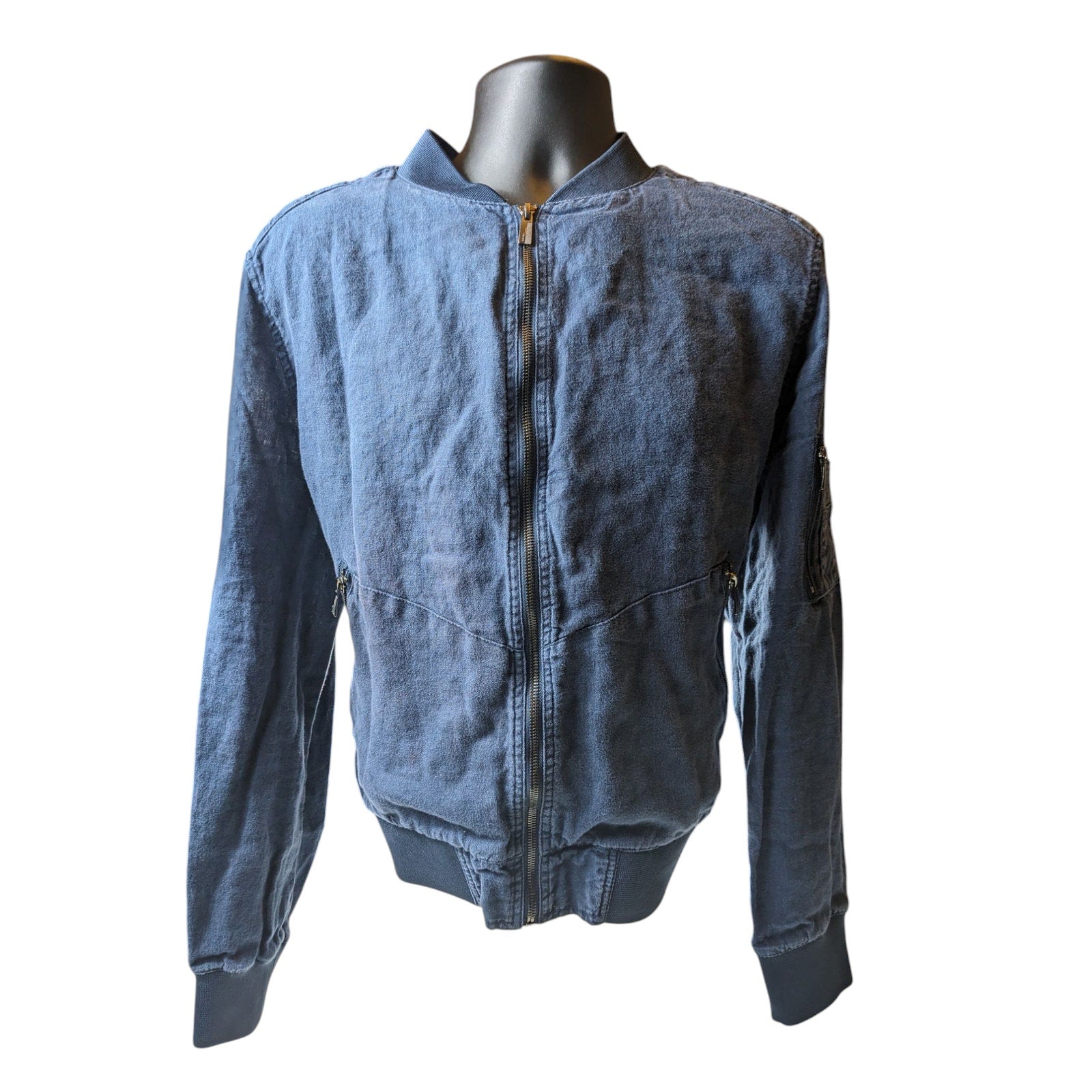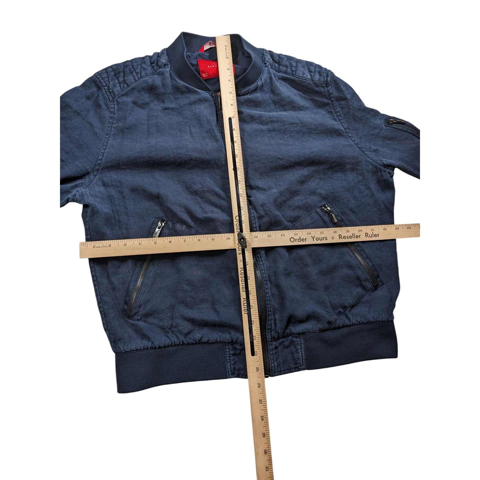 Zara Man Bomber Jacket Men XXL Blue Lightweight ZipUp Casual Pockets Retro Style
